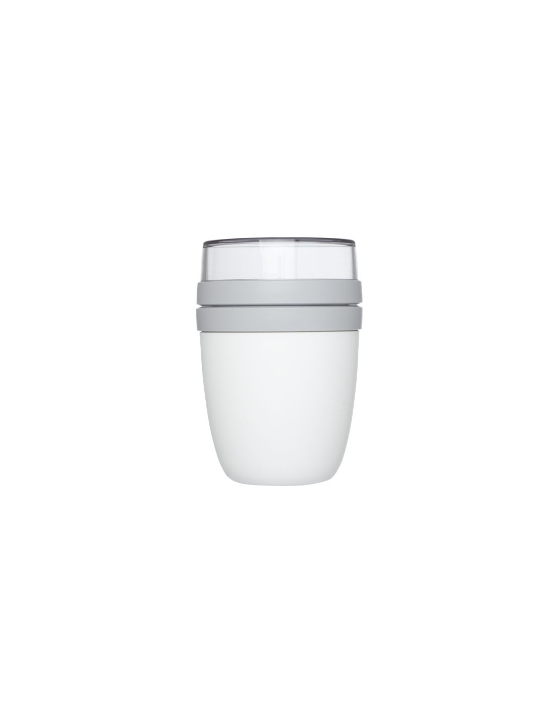 Fiambrera con dos compartimentos diferentes para mantener los diferentes ingredientes separados. Ambos recipientes tienen una tapa independiente y, por lo tanto, permanecen limpios. El contenido del recipiente transparente superior es de 200 ml, lo que significa que puede contener unos 75 gramos de alimentos sólidos. La capacidad del recipiente inferior es de 500 ml. Fabricada con material duradero y apta para el congelador, el microondas (sin la tapa) y el lavavajillas. El recipiente transparente superior no debe utilizarse en el microondas. Hermética. Sin BPA. Garantía Mepal de 2 años.