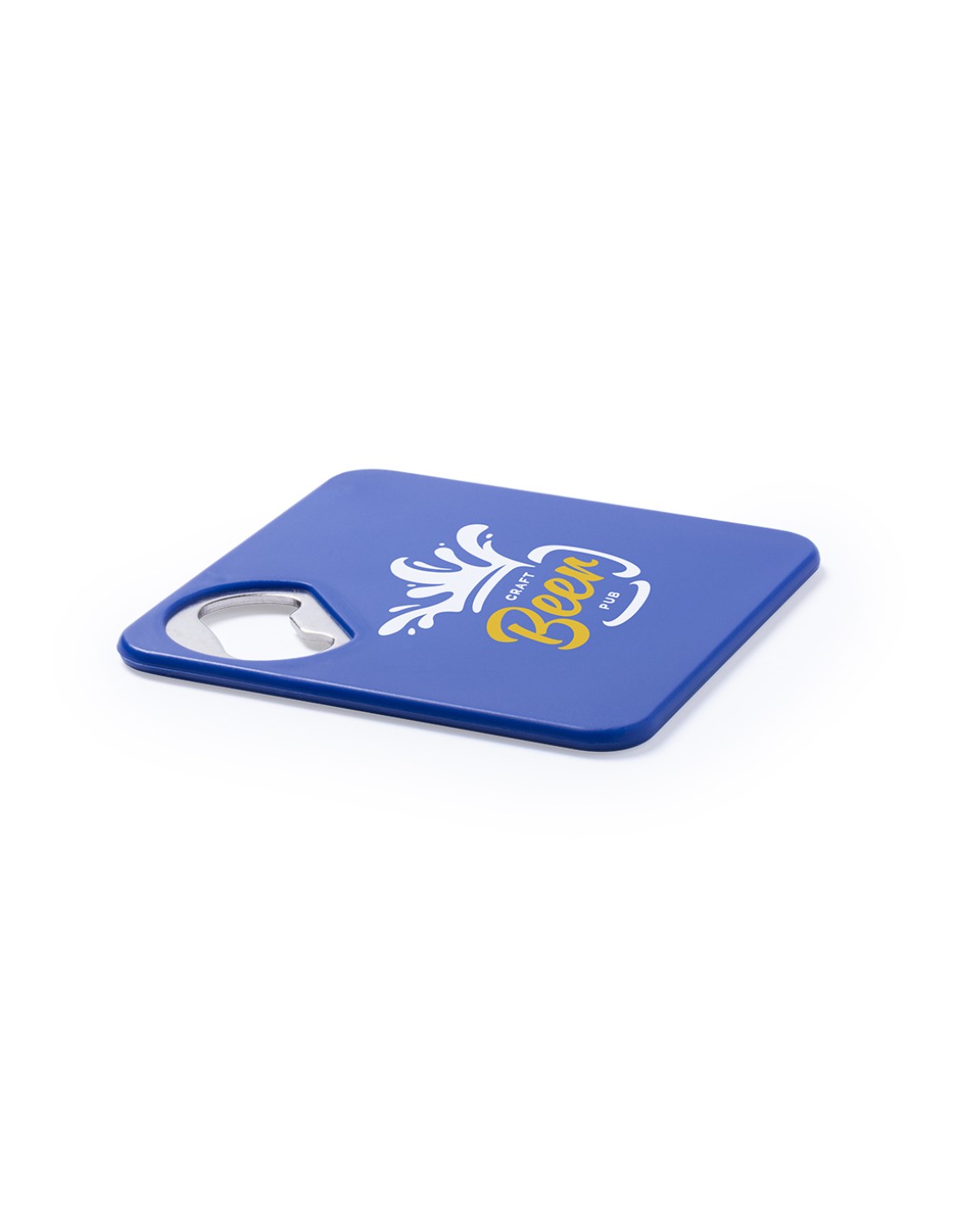 Original posavasos con abridor metálico integrado en variada gama de vivos colores. Con superficie anti deslizante en la base.
