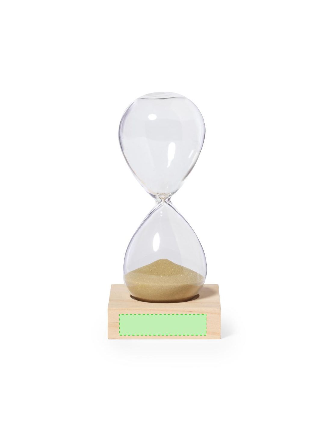 Reloj de arena de 5 minutos de duración. Fabricado en cristal de borosilicato, que ofrece una resistencia y durabilidad excepcionales, con base en madera de pino natural. Su elegante diseño y la arena en color natural lo convierten en un gadget decorativo y funcional, ideal para medir el tiempo. Presentado en una caja individual de diseño kraft.
