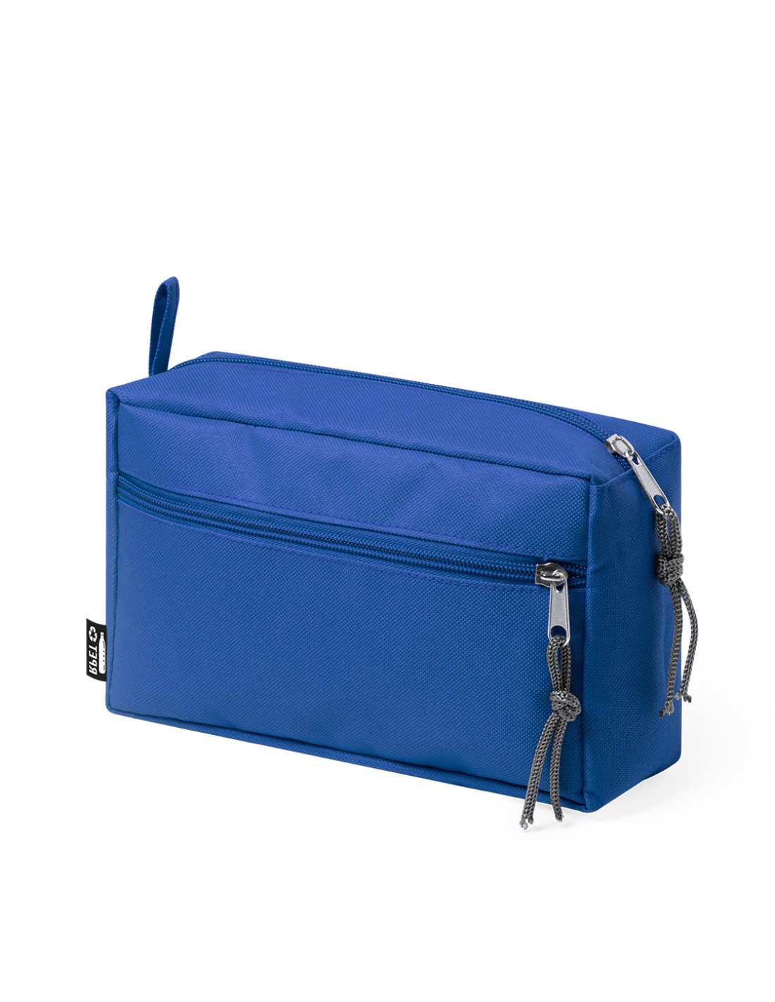 Neceser de línea nature en RPET, elaborado a partir de plástico reciclado, para así fomentar la reutilización de residuos plásticos y ayudar a la sostenibilidad del planeta. Compartimento principal y bolsillo frontal con cierre de cremallera, con cintas en tiradores para cómoda apertura. Asa de transporte a juego y distintivo RPET en etiqueta lateral. Disponible en variada gama de colores.