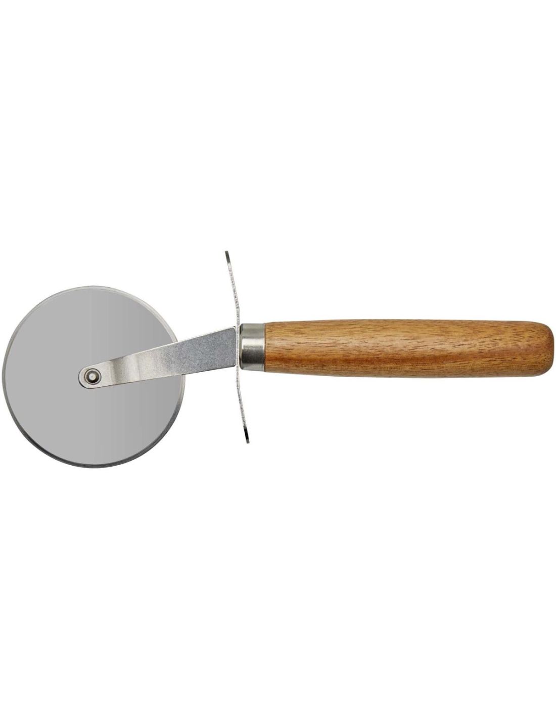 Set de pizza fabricado en madera de acacia. El set incluye una tabla para servir pizza con 6 ranuras para cortar y hacer porciones iguales, y un cortador de pizza.