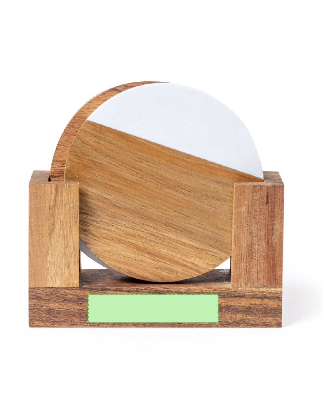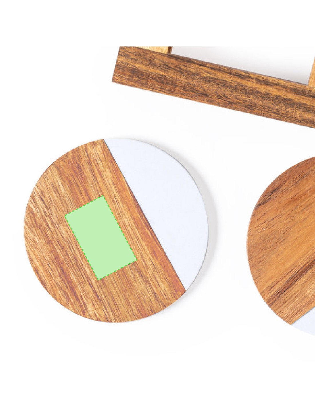 Elegante set de posavasos premium. Fabricado en combinación de materiales naturales: madera de acacia con detalle en extracto de mármol. Incluye 2 piezas, con soporte a juego en madera de acacia. Presentado en caja individual de diseño kraft.