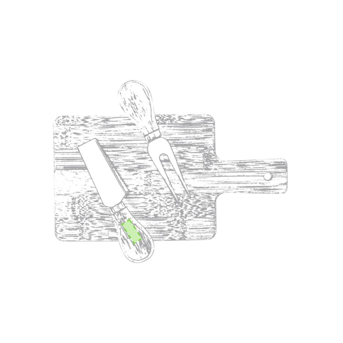 Completo set de quesos de línea nature, fabricado en bambú y acero inoxidable. Incluye tabla de corte y presentación con mango y agujero para colgar, trinchador y cuchillo. Presentado en estuche individual troquelado de cartón reciclado acabado kraft.