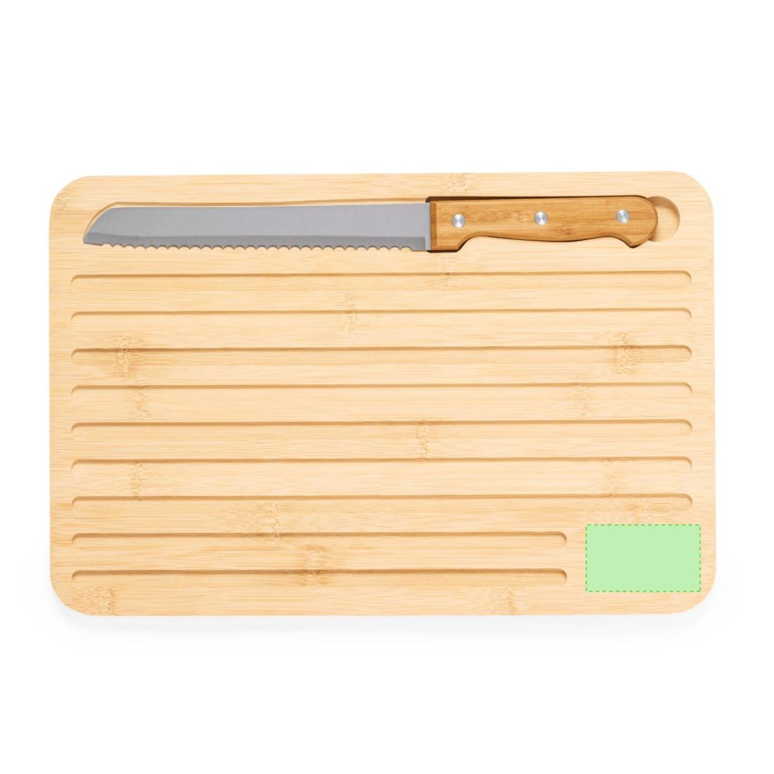 Tabla de cocina fabricada en bambú, acompañada de un cuchillo. Su cara lisa permite diversas aplicaciones, mientras que la otra presenta surcos grabados en la madera, ideal para cortar pan o alimentos jugosos. Incluye un compartimento con un cuchillo de sierra de hoja de acero y mango en bambú. Materiales como el bambú fomentan la utilización de materias primas naturales, reduciendo las emisiones contaminantes. Proviene de una planta de gran resistencia y versatilidad, con crecimiento y regeneración rápidos, siendo una excelente alternativa al uso de madera tradicional.