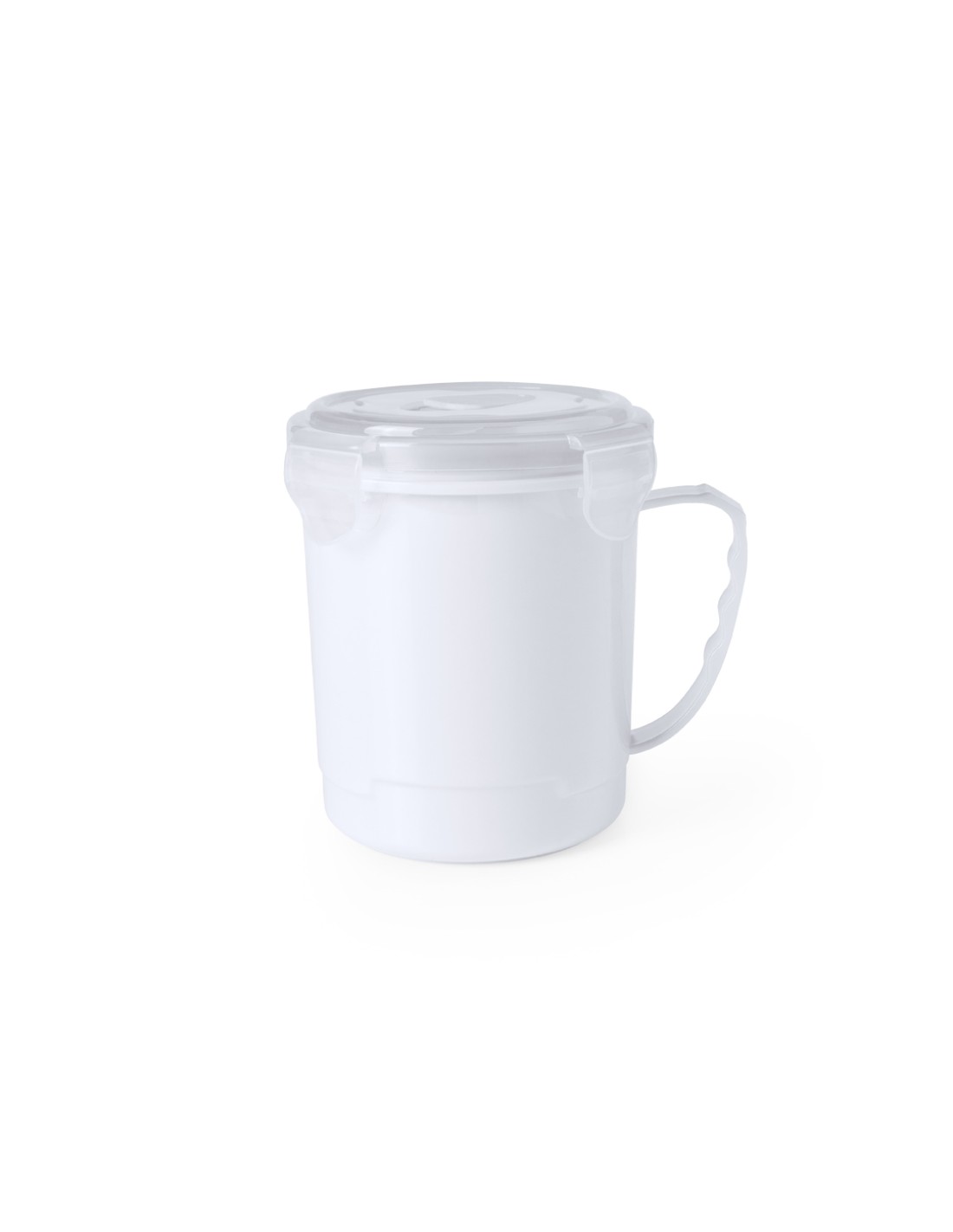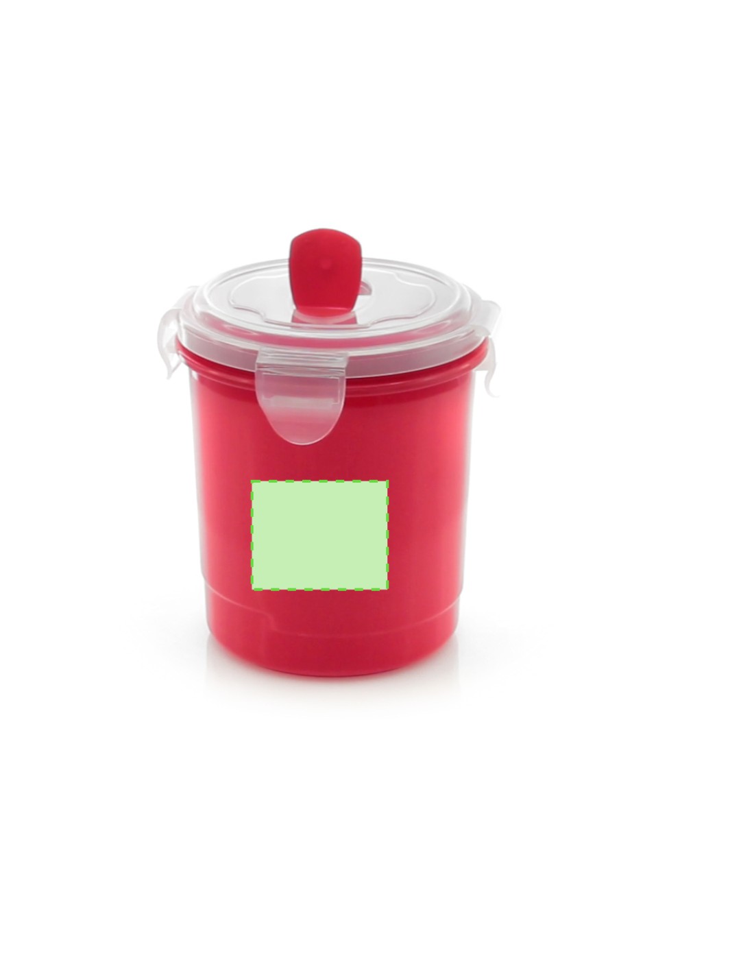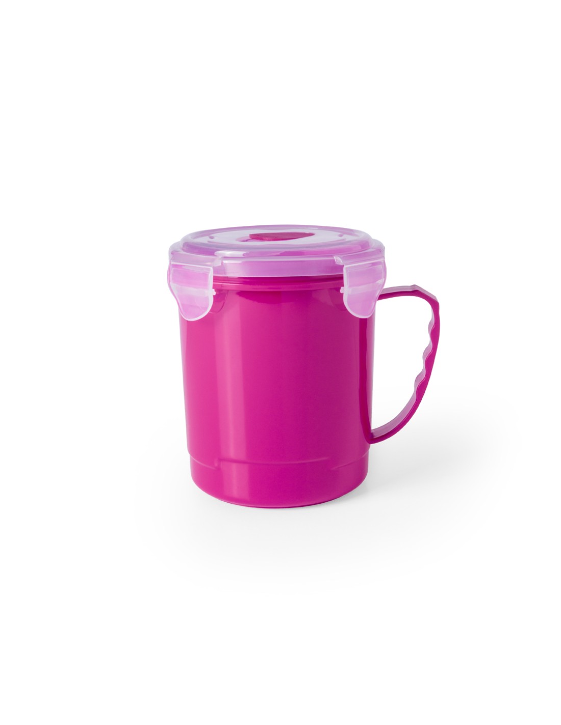 Tarro de 710ml de capacidad en resistente PP especialmente diseñado para líquidos. En variada gama en vivos colores, tapadera translúcida con 4 cierres, anilla de seguridad interior y dosificador integrado. Asa ergonómica a juego
