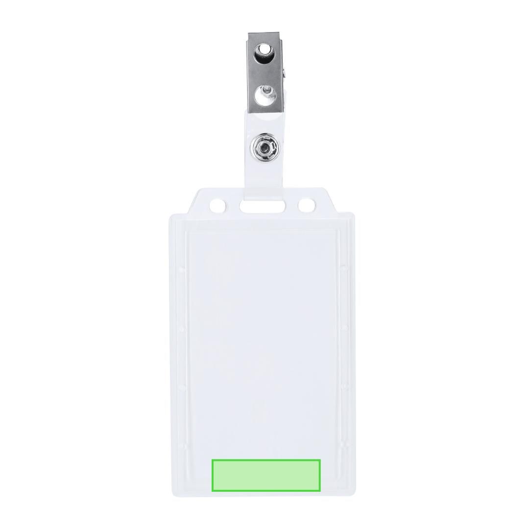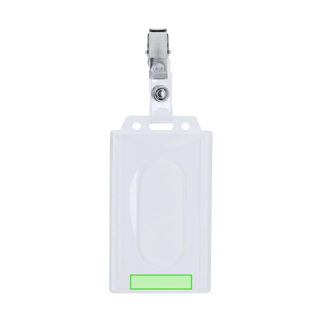 Identificador de PS rígido con pinza metálica en orientación vertical. Ideal para llevar colgado y mostrar tu identificación. El sistema de cierre es extraíble y puedes utilizar el identificador en conjunto con lanyard.