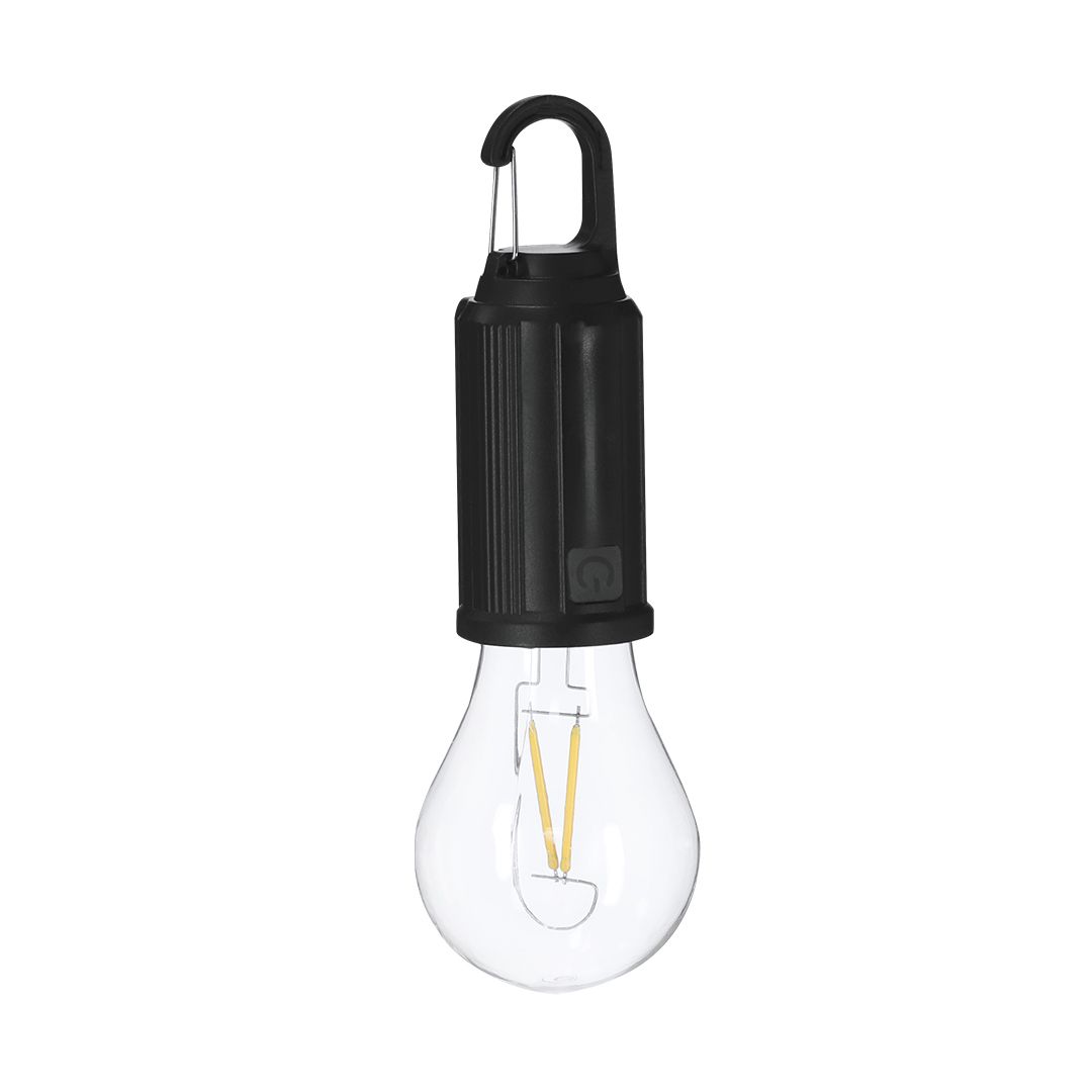 Lampara con original diseño de bombilla con cuerpo en ABS. Batería de 300 mAh y carga solar. Dispone de sensor nocturno que se activa automáticamente al no recibir luz solar. Dispone de carga a través de cable Tipo C, además de incluir mosquetón para fácil transporte.