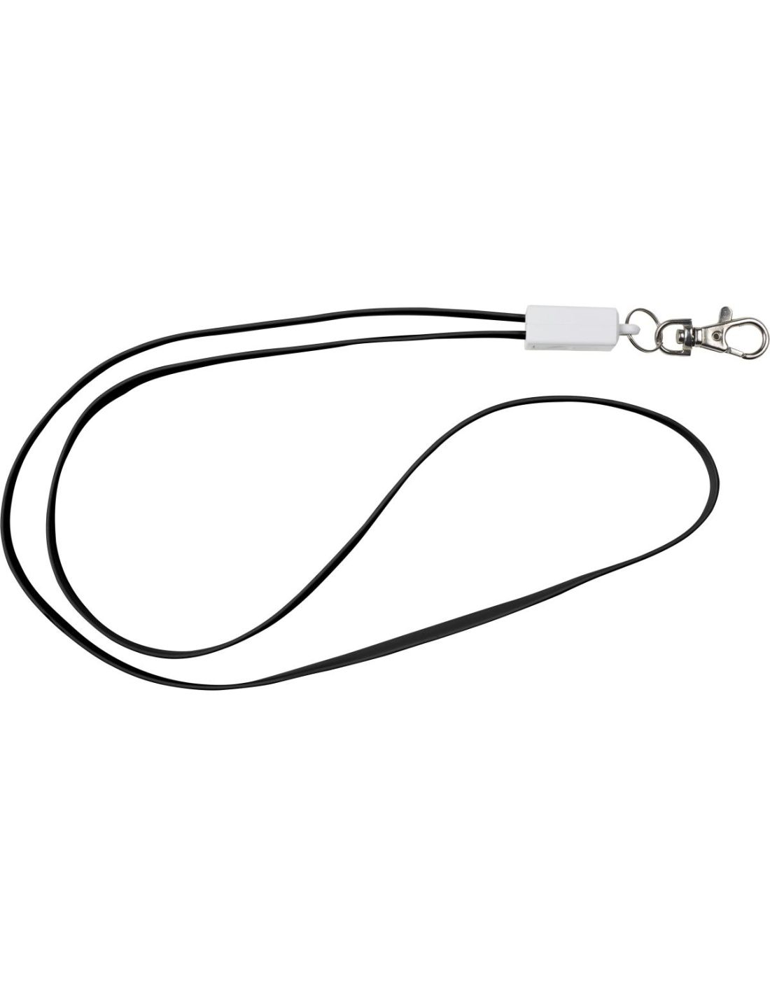 Lanyard de TPE y cable de carga con conector USB, y micro USB-lightning. Incluye mosquetón metálico.