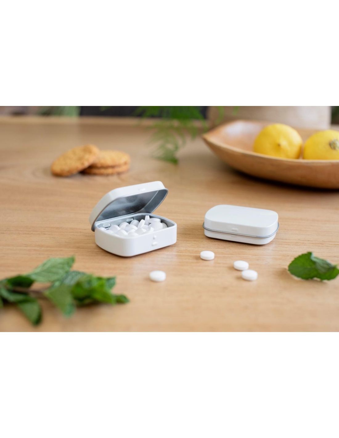 Lata con aprox. 23 gr. de pastillas de menta sin azúcar.