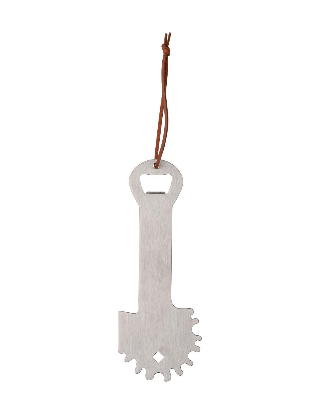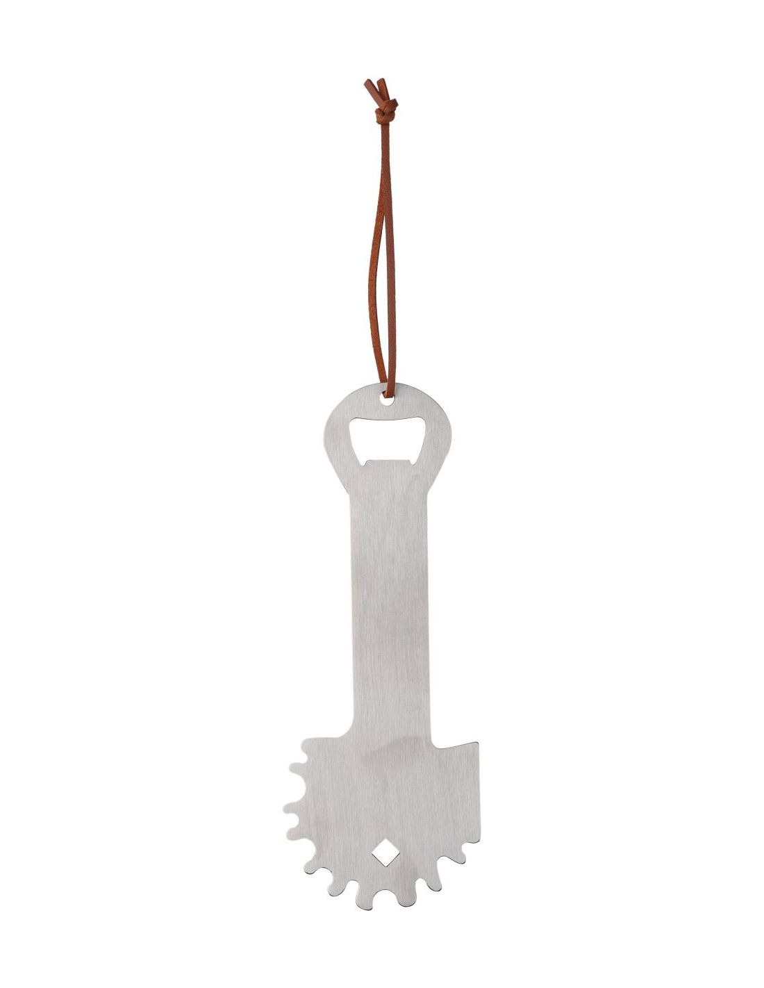 Limpiador de barbacoa de acero inoxidable con función de abridor de botellas integrado. Incluye un cordón de PU para colgarlo fácilmente. Presentado en una funda de papel Kraft.
