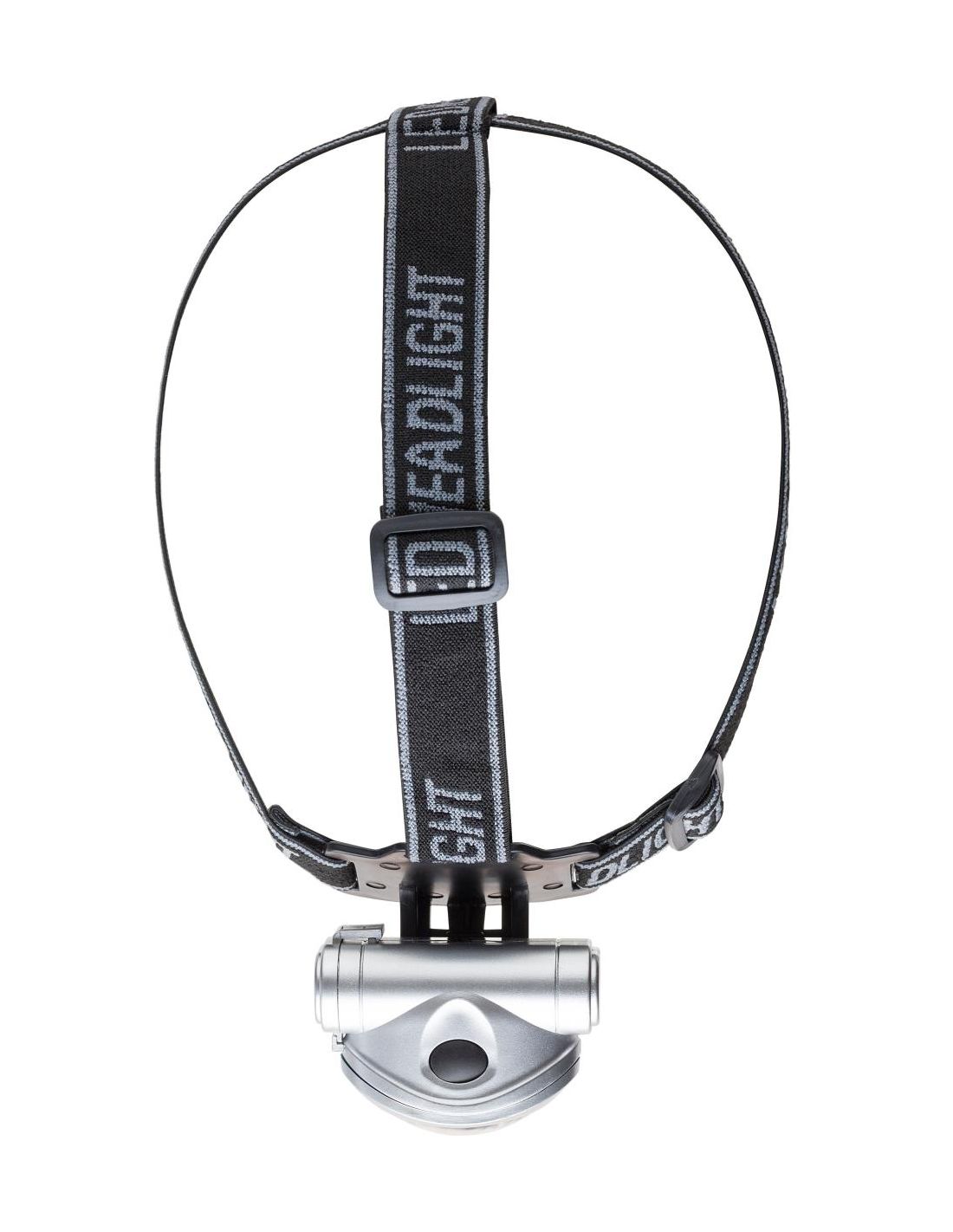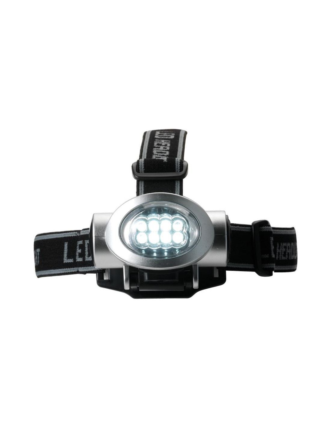 Linterna frontal de ABS con 8 luces LED y 3 posiciones de ajuste. Pilas incluidas.