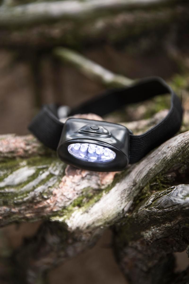 Linterna frontal de ABS con 5 luces LED y 3 posiciones de ajuste. Pilas incluidas.