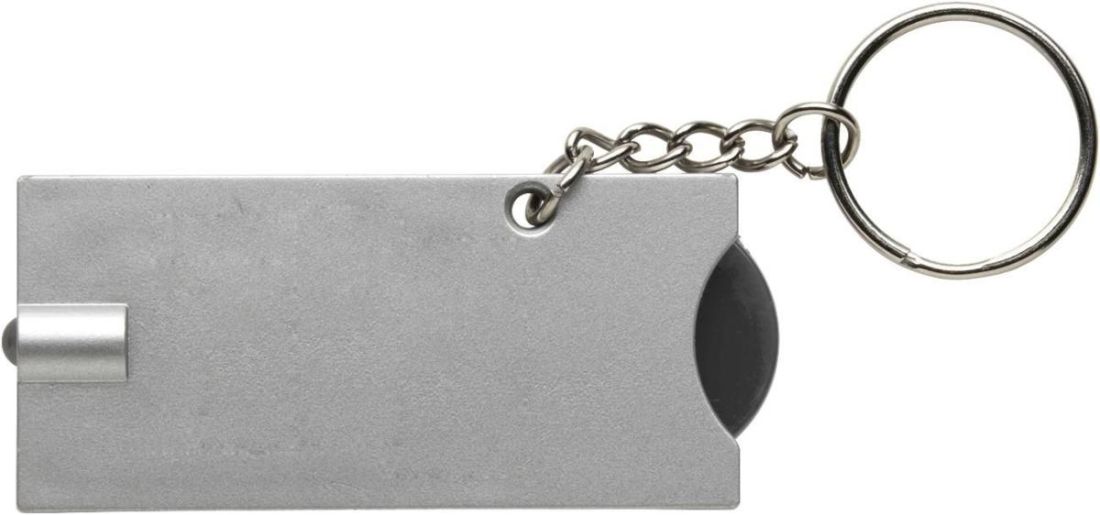 Llavero de PS con linterna LED y moneda de plástico de 50 céntimos.