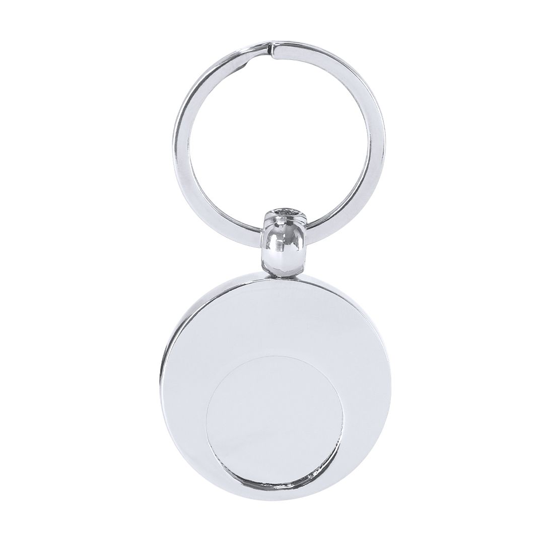 Llavero metálico con moneda extraíble y anilla metálica cromada.