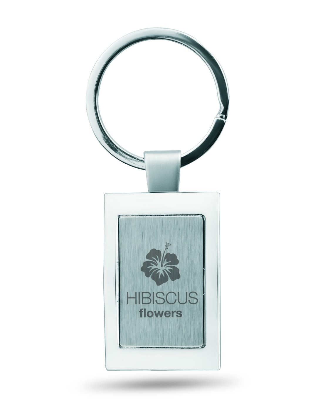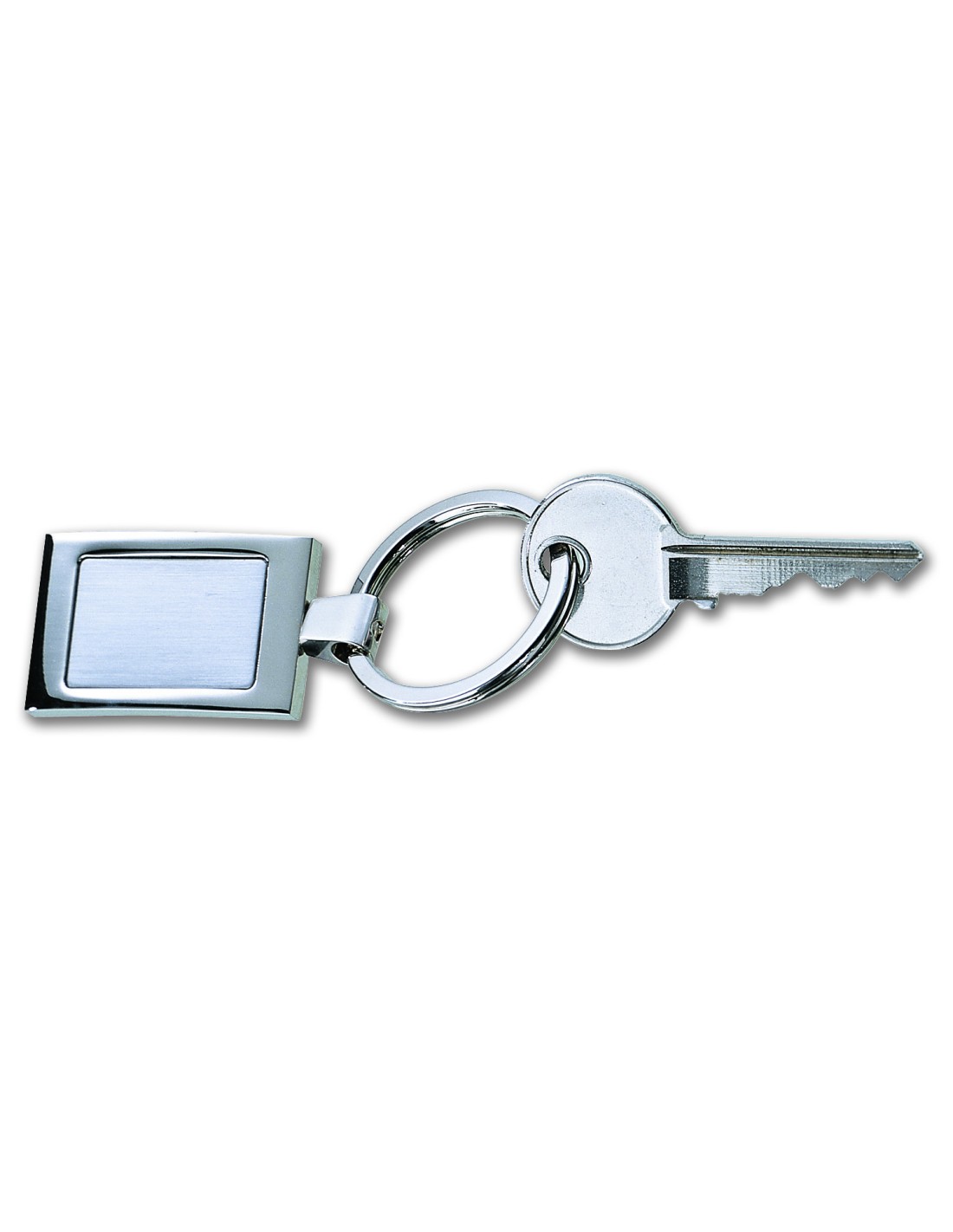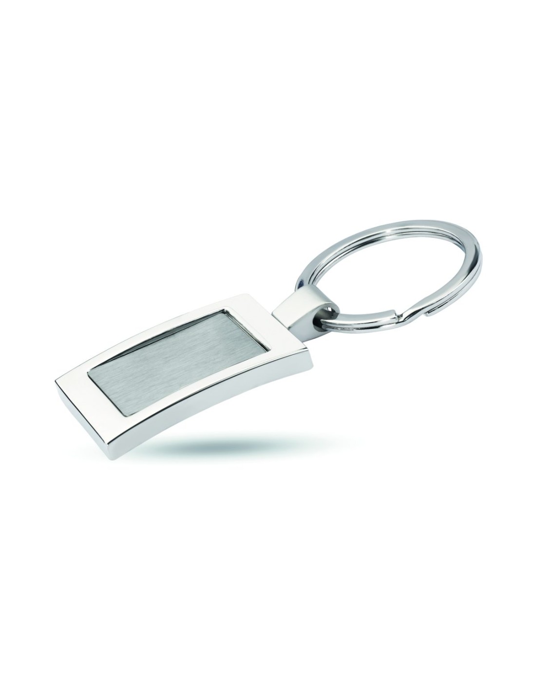 Lujoso llavero rectangular de aleación de zinc cromado. Presentado en caja de regalo individual.