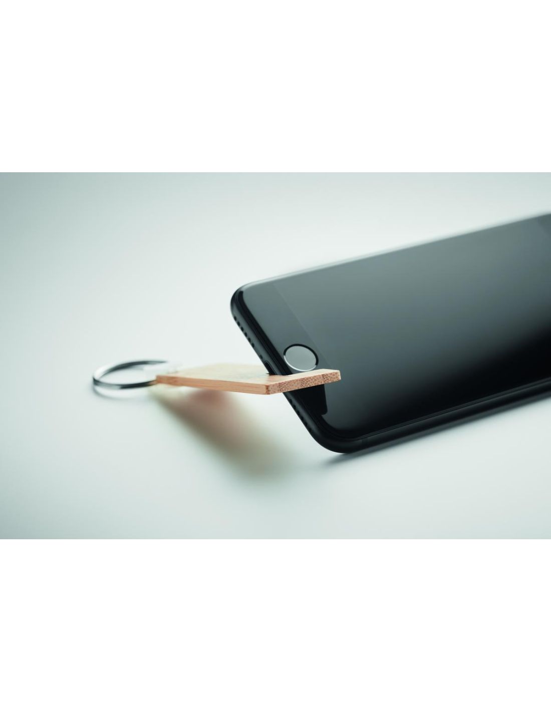 Llavero de bambú con función de soporte para el teléfono. Un elegante llavero de bambú que también sirve de soporte para el teléfono. Así podrá lle…