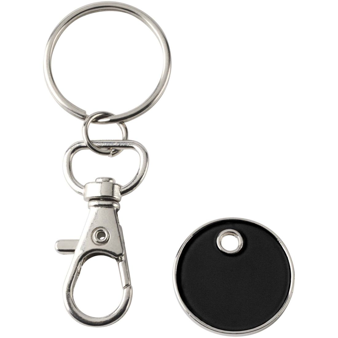 El llavero con moneda de color para carritos está diseñado para adaptarse a la mayoría de los carritos de supermercado, lo que permite desbloquearlos sin monedas ni fichas. Diámetro de una moneda de 1 euro/libra.