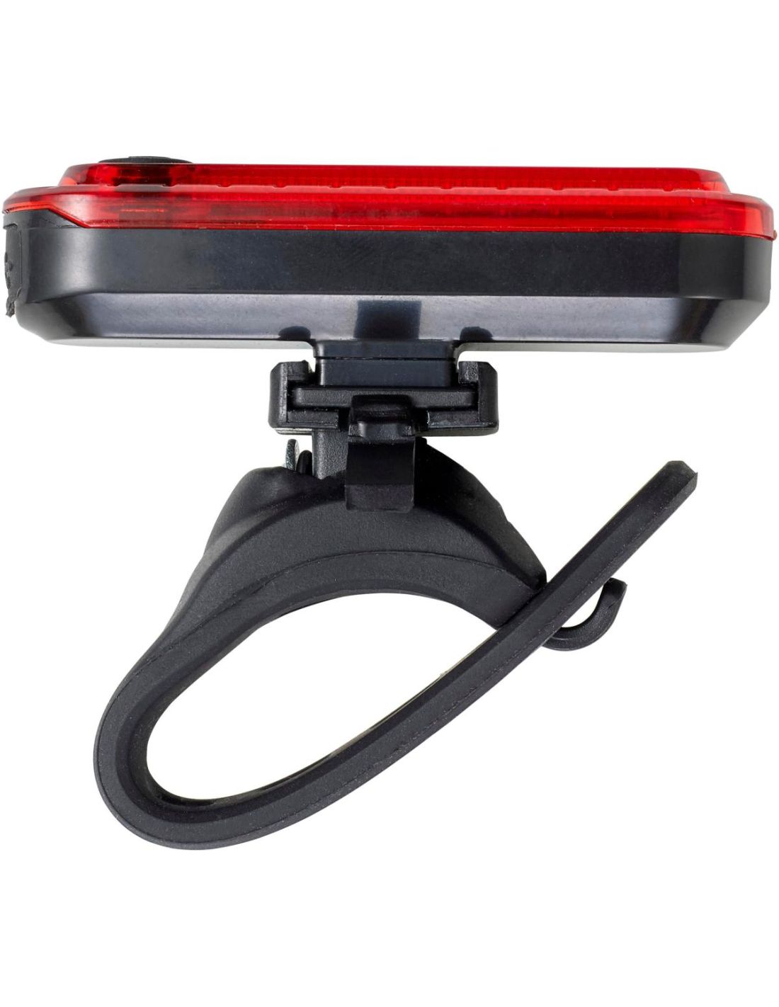 Luz recargable de ABS y PC para bicicletas. Puede extraerse del soporte. Luces LED COB con cuatro ajustes diferentes. Tiene una correa de silicona y puede cargarse a través de un puerto micro USB (incluye el cable). Pila incluida.
