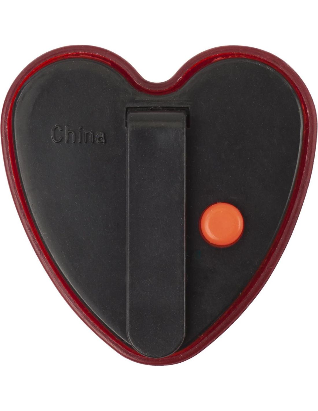 Reflector de ABS con función fija e intermitente, en forma de corazón y con clip. Pilas incluidas.