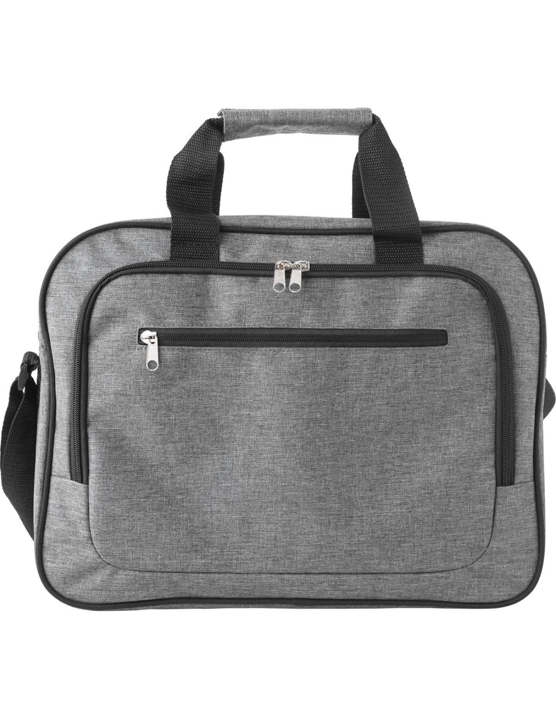 Maletín de poliéster (300 D) con un compartimento principal para un portátil de 15'' y dos bolsillos frontales. Asas y correa ajustable.
