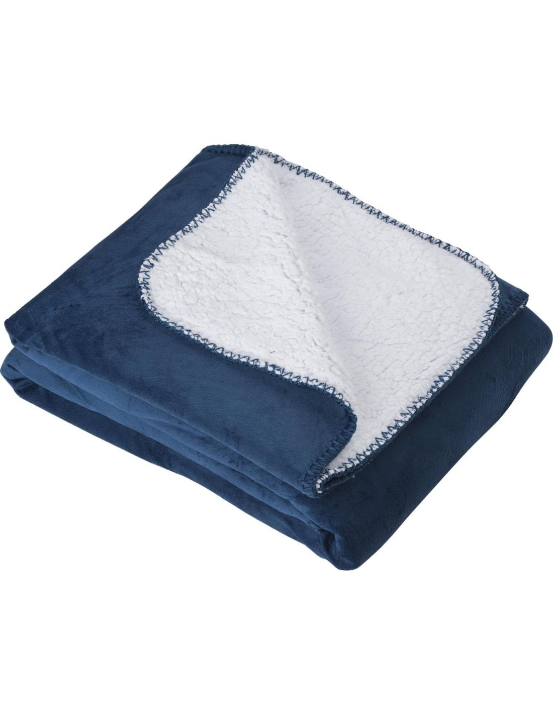 Manta de doble cara, poliéster y microvisón (190 gr/m²). Suave tacto símil piel de borrego en su interior. Se presenta doblada, con una cinta cerrada y cartón para imprimir.