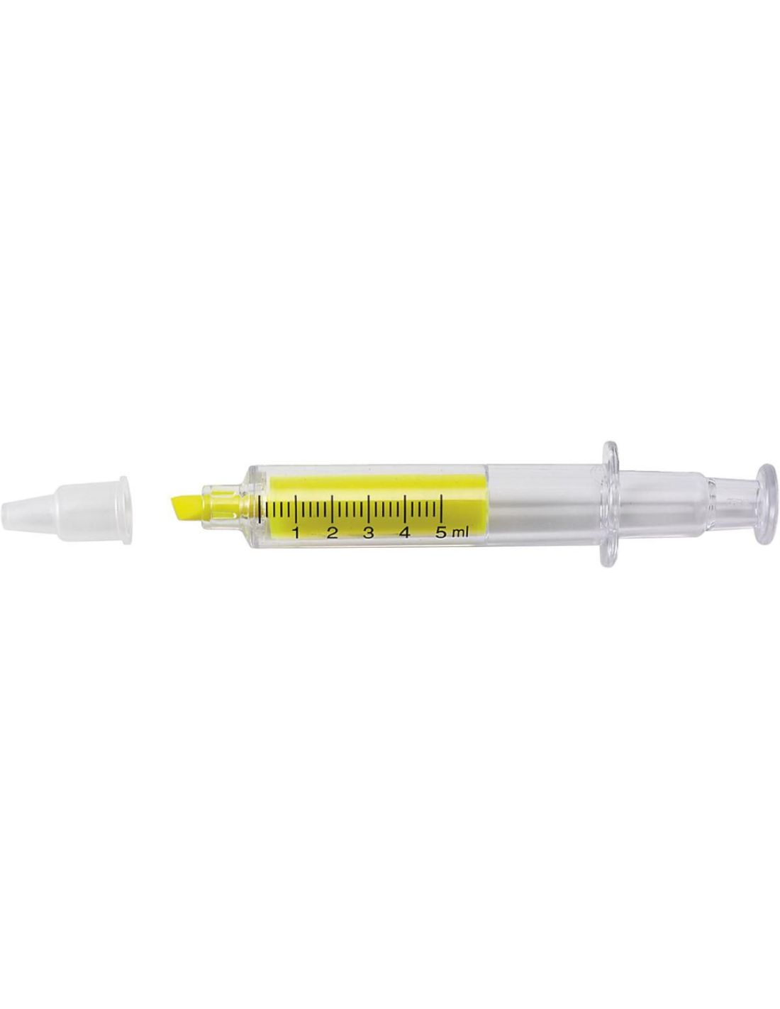 Marcador fluorescente de ABS en forma de jeringuilla.