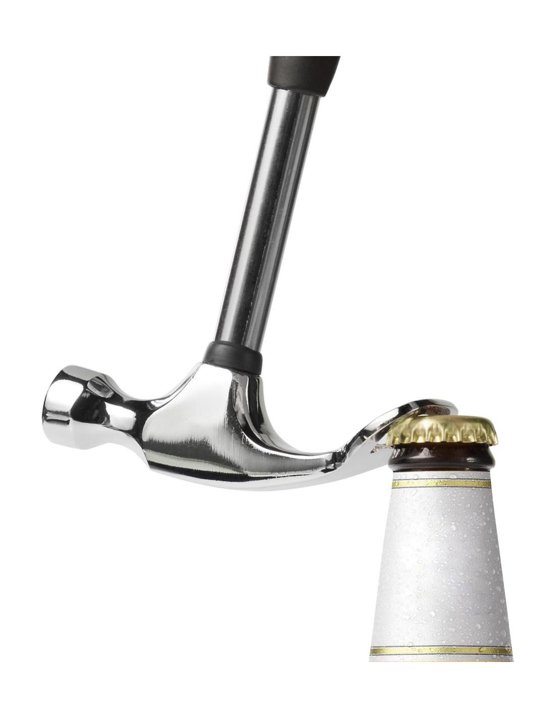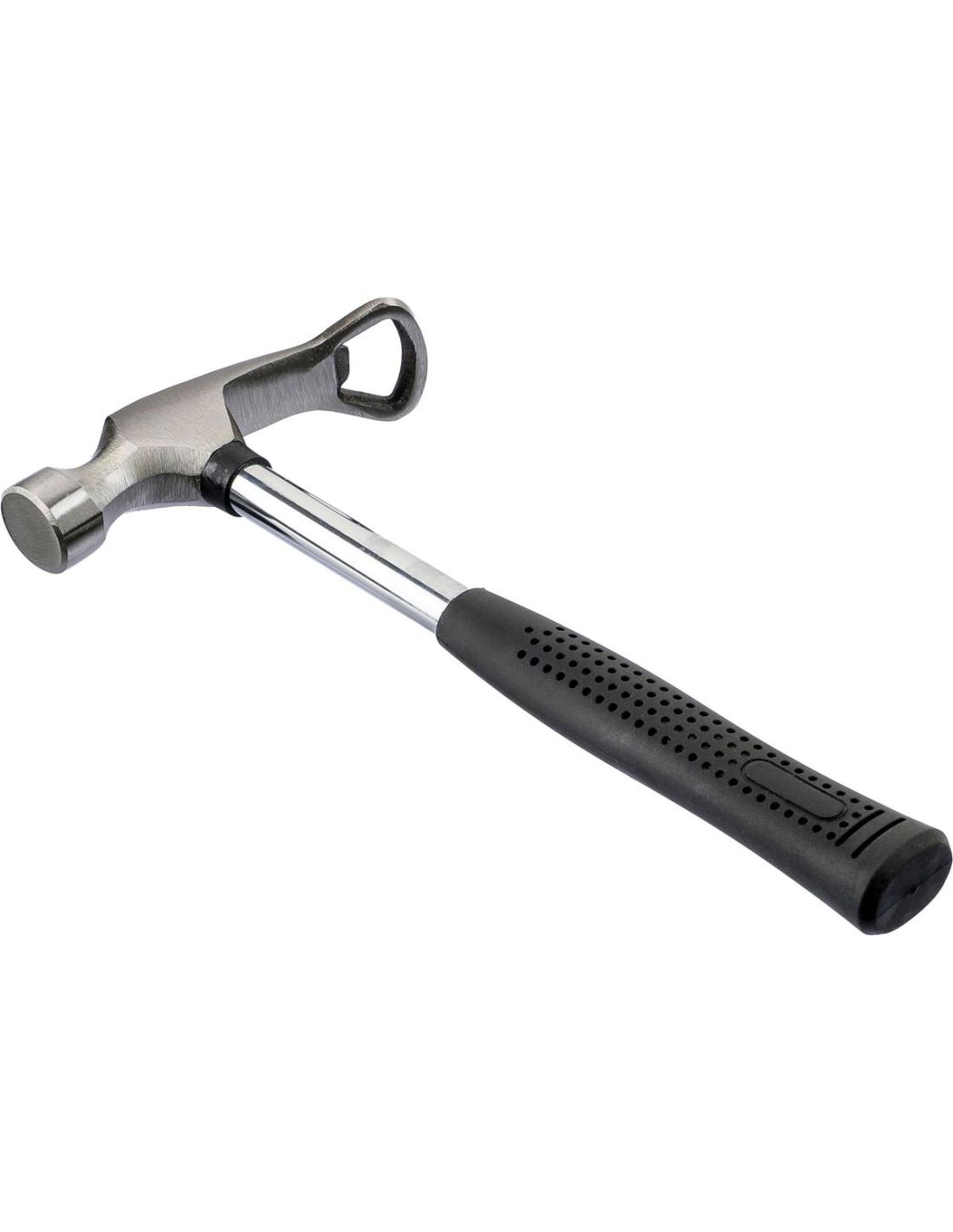 Martillo de acero al carbono con abridor en el cabezal. Mango de PVC en color negro.