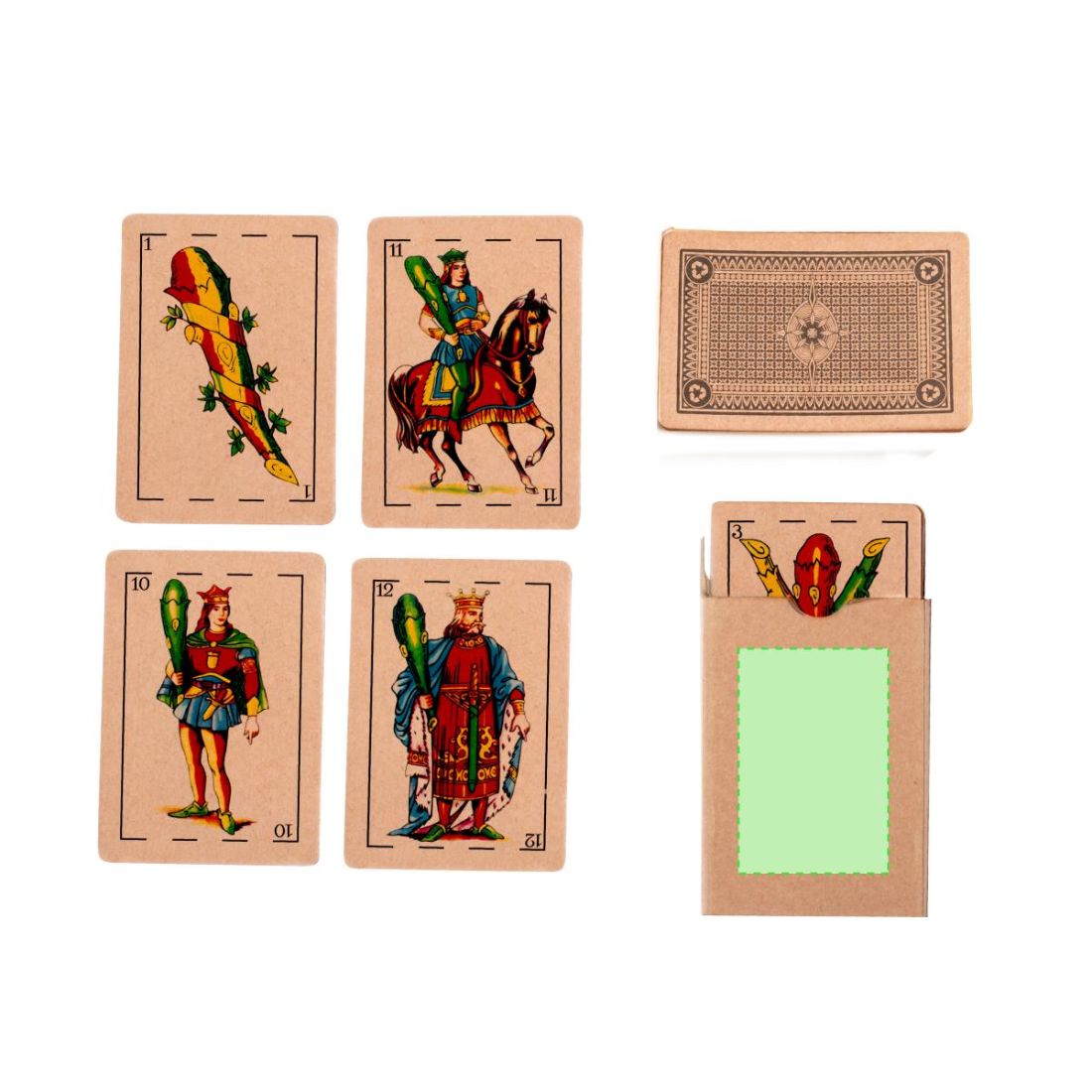 Baraja española fabricada en resistente cartón reciclado. Incluye 50 naipes y viene presentada en un estuche de cartón de acabado kraft.
