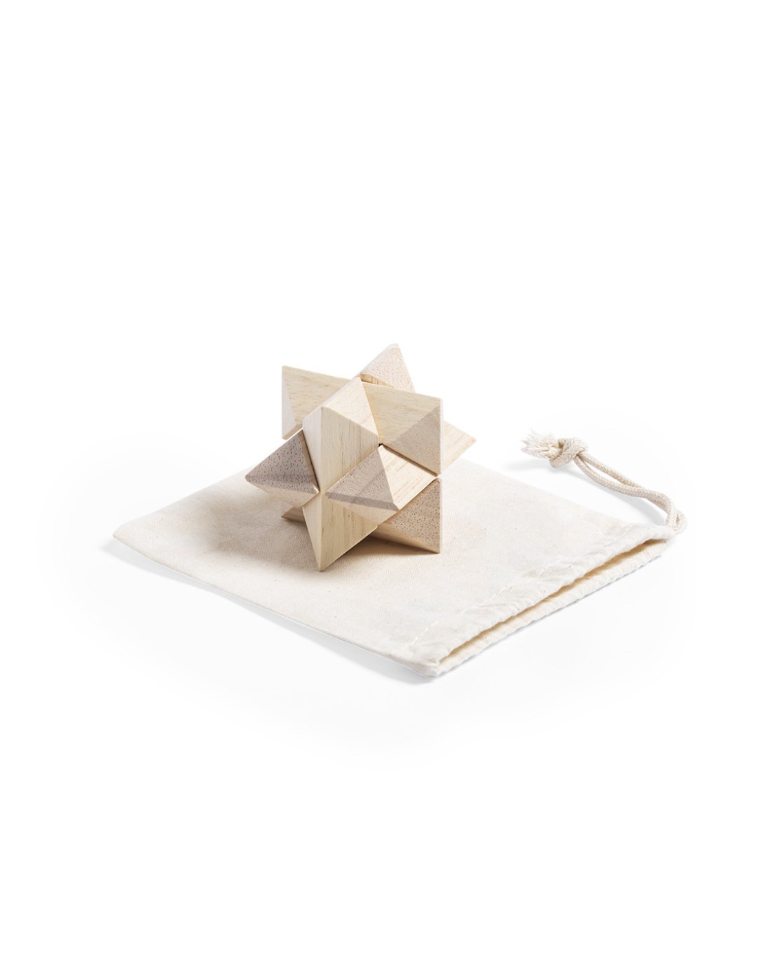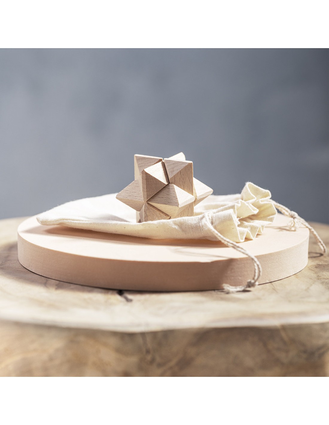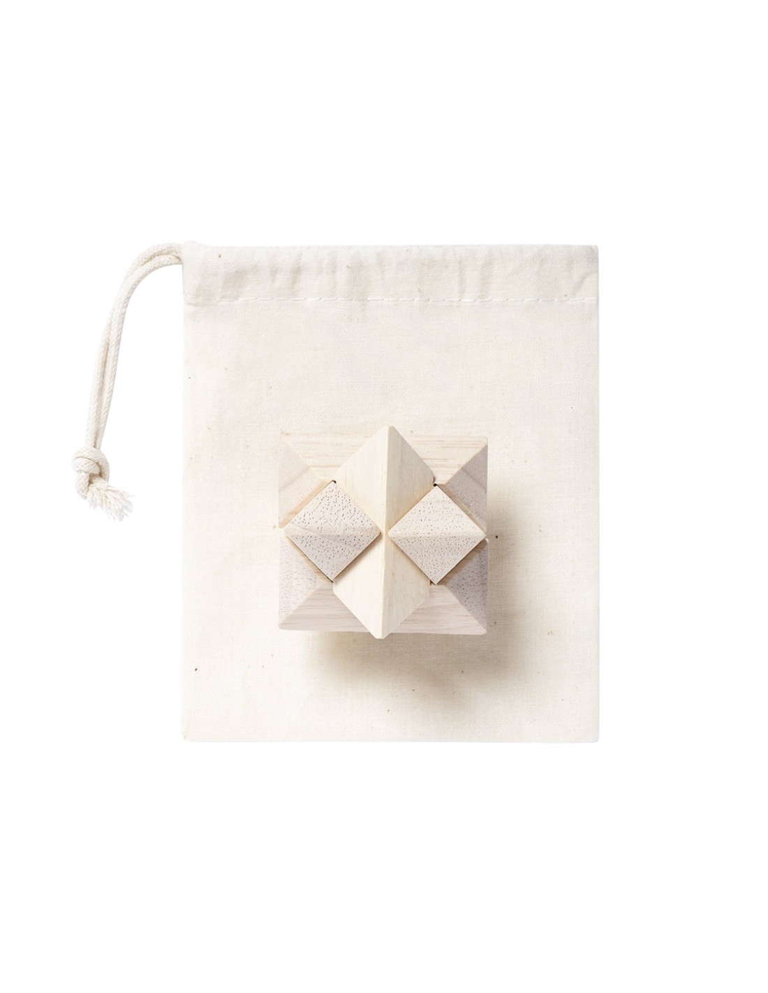 Juego de habilidad de 6 piezas para los más sesudos, presentado en una resistente funda de algodón con cierre de cordón.