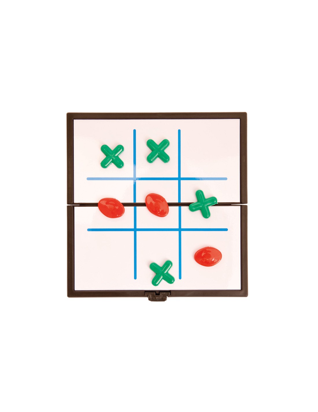 Juego de mesa plegable con superficie metálica y fichas magnéticas. Disponibles parchís, tres en raya y damas. Presentado en caja individual.