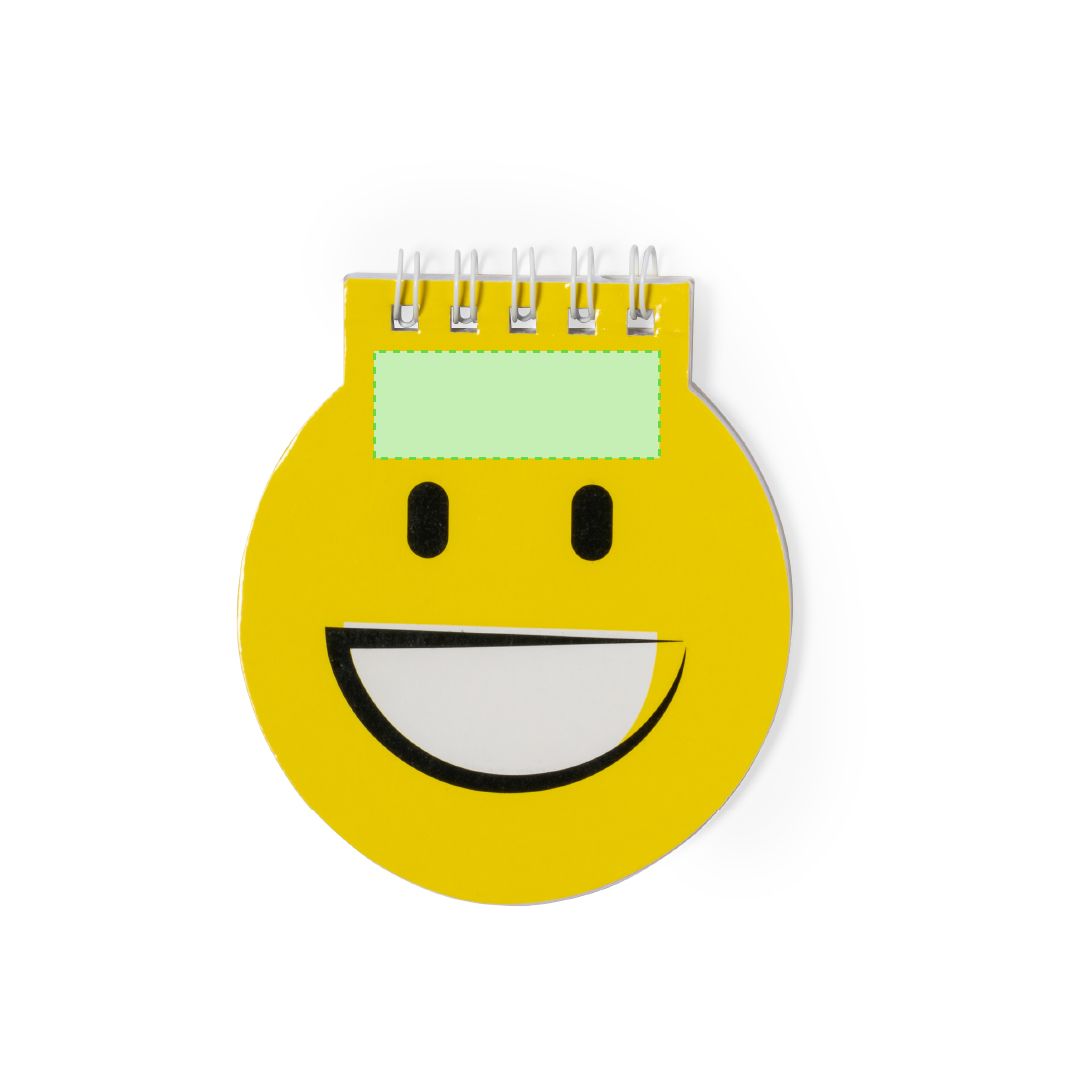 Libreta de divertidos diseños emoji en llamativo color amarillo. De anillas blancas, con tapas de cartón rígidas de suave acabado brillante y 40...