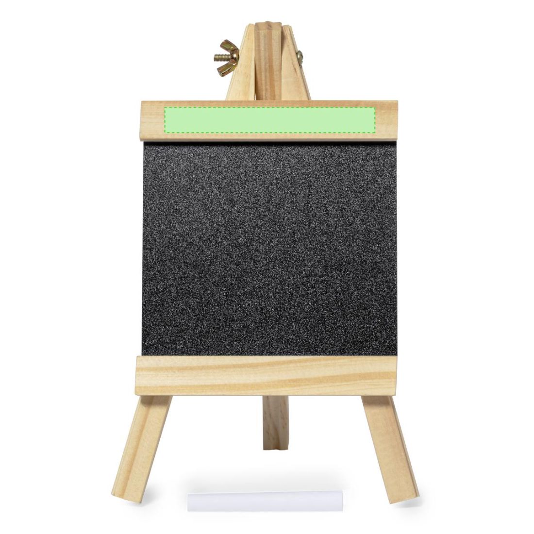 Original atril con pizarra hecha en madera, con tiza incluida. Presentado individualmente en caja de diseño kraft.