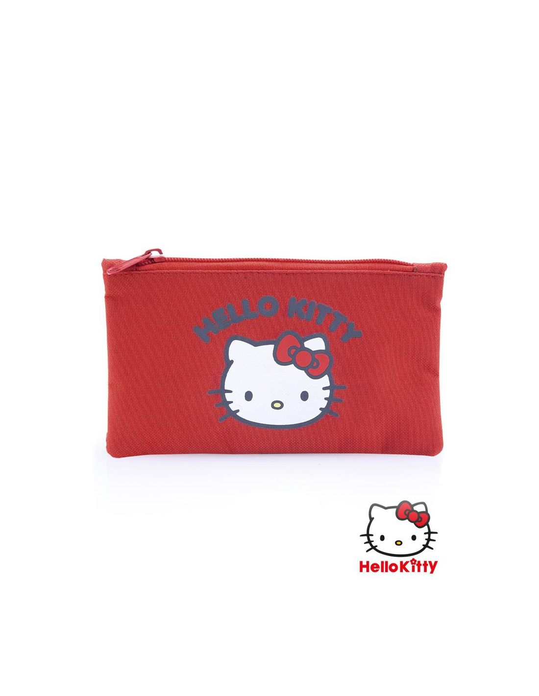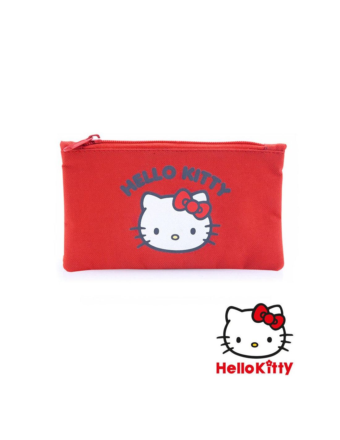 Estuche portatodo de Hello Kitty en resistente poliéster 600D con diseño de gatita de la marca. Con cierre de cremallera y tirador a juego.