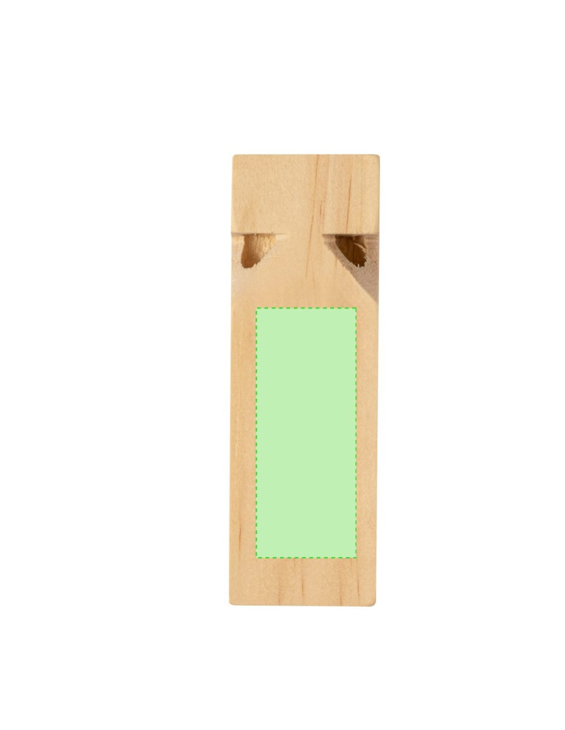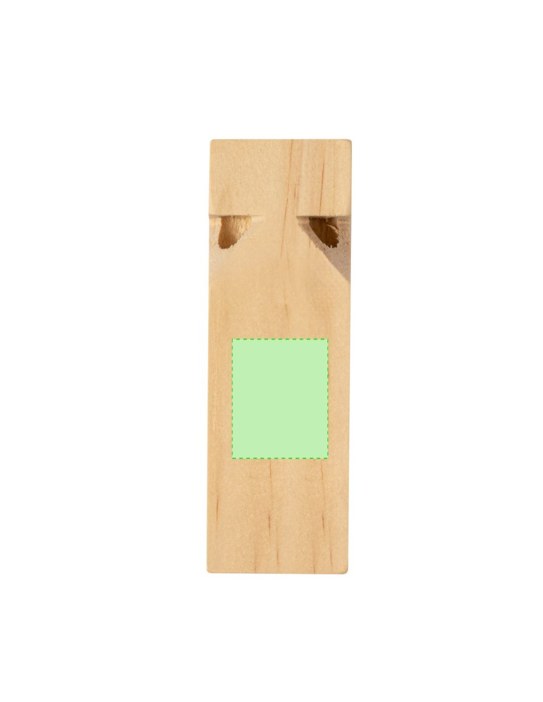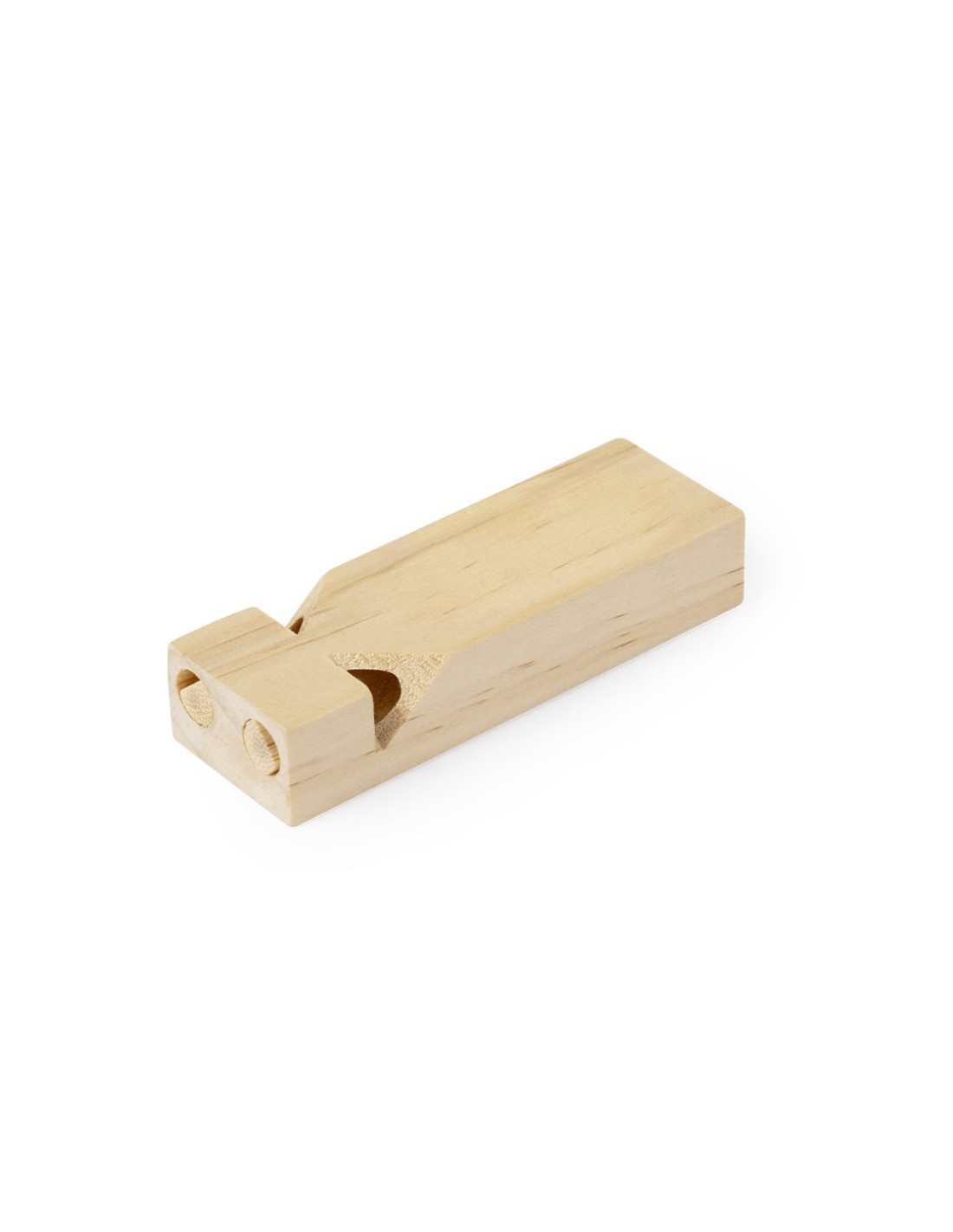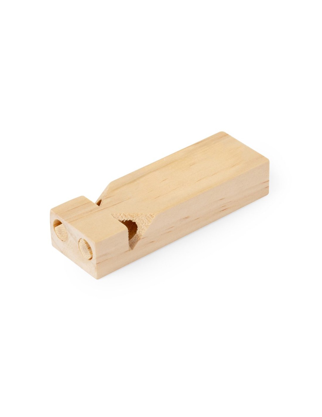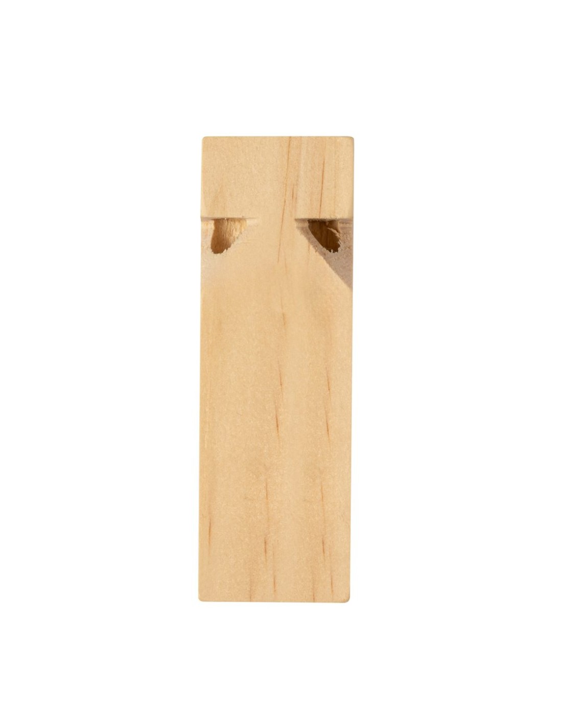 Divertido silbato con dos modalidades de sonido distintas. Fabricado en suave madera, de diseño artesanal con un toque natural. Presentado individualmente en bolsa reciclada.