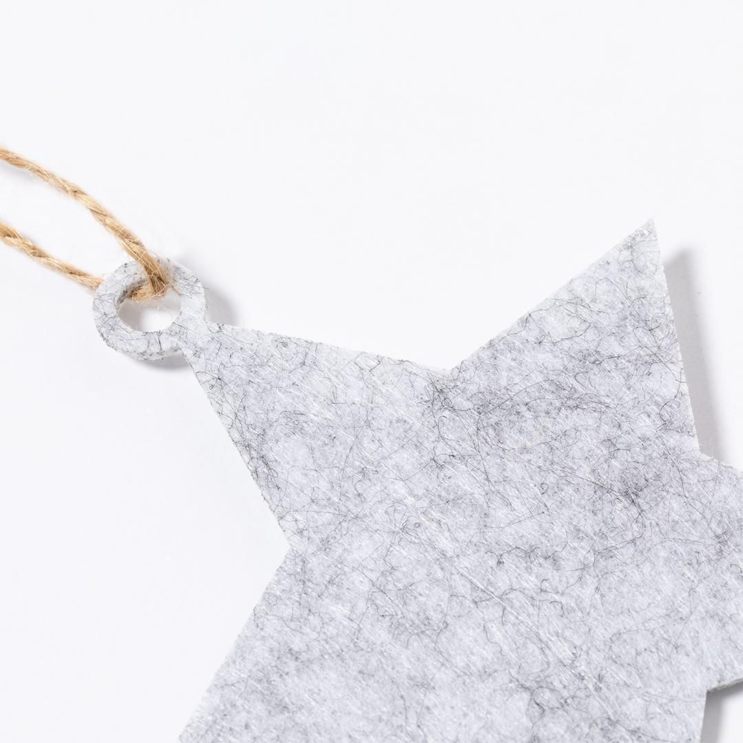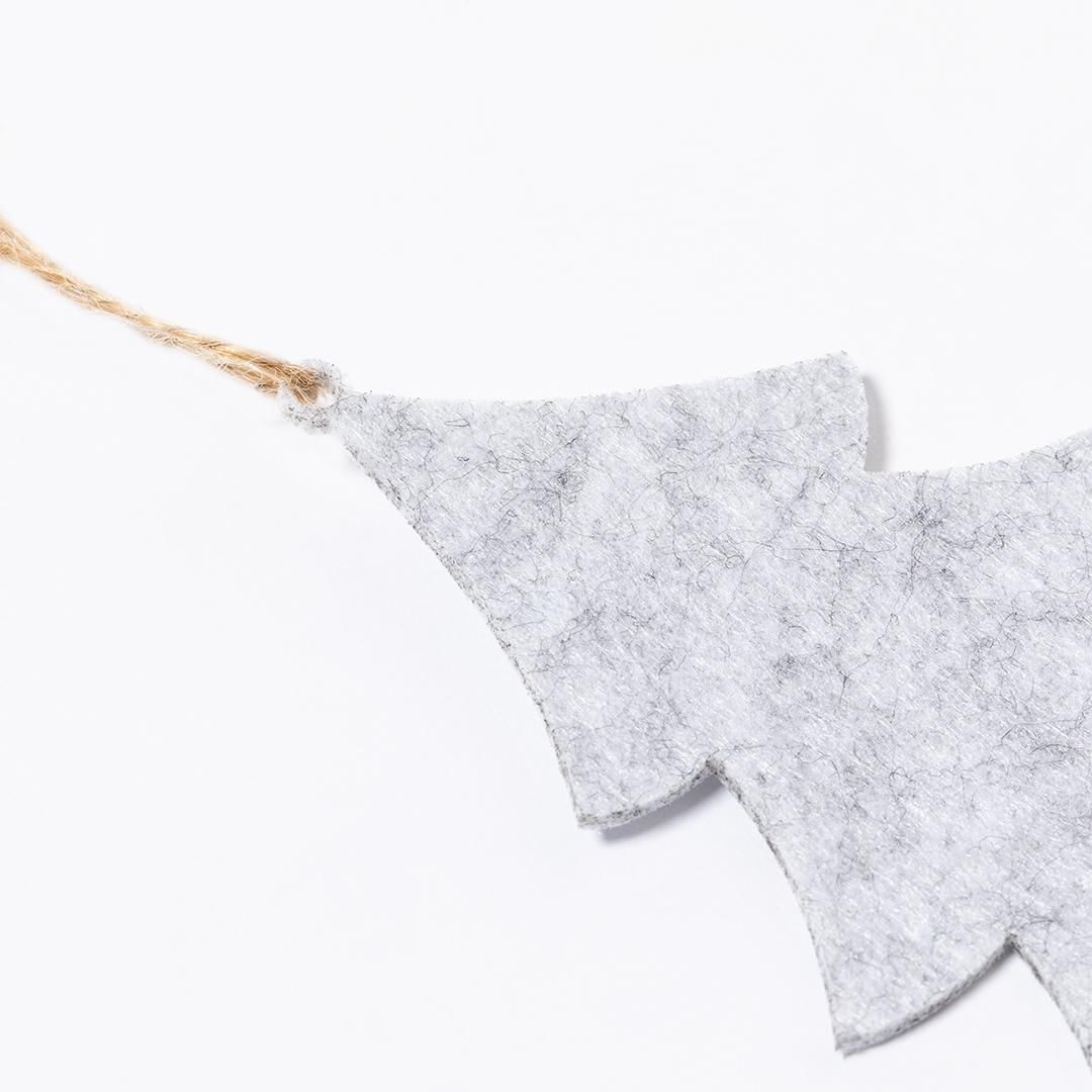 Set de adornos navideños de 3 piezas fabricadas en suave fieltro. Incluye en 3 diseños: Árbol de Navidad, Estrella y Bola Navideña. Todas las piezas incluyen colgador. Presentado en bolsa de papel reciclado.
