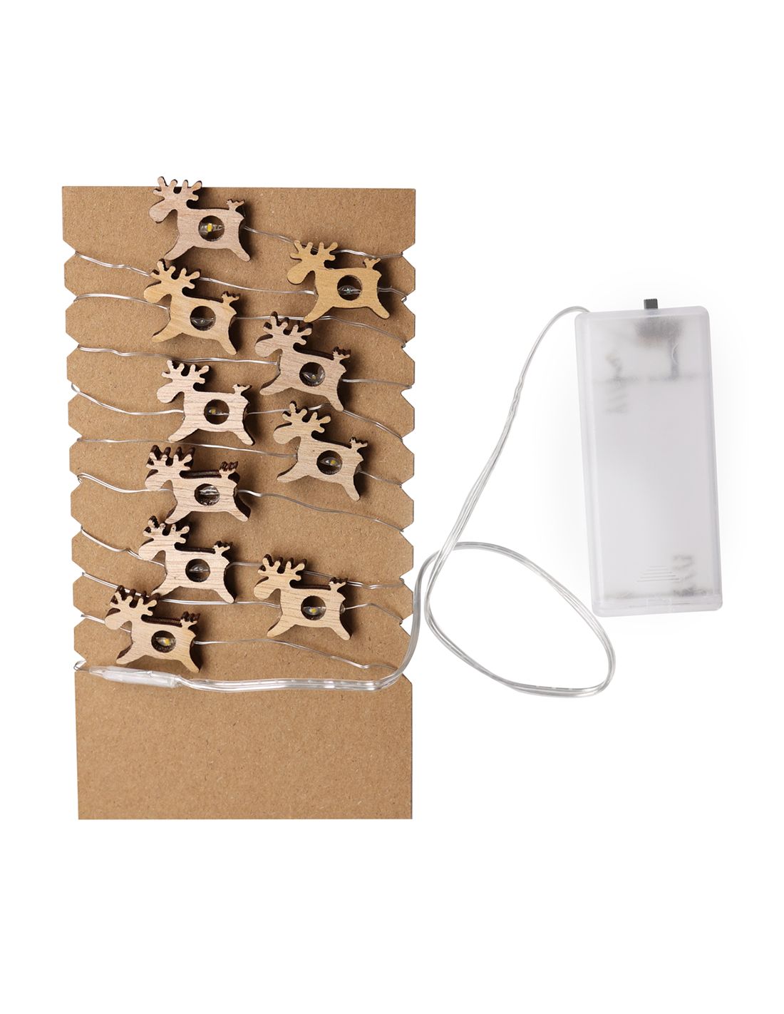 Guirnalda iluminada fabricada en madera natural. Con formas de estrella y reno intercaladas, se convierte en un original complemento decorativo que incluye adornos en materiales naturales. Con cálida iluminación con 20 LEDs. Alimentación a pilas (2xAA no incluidas). Presentación en atractiva caja kraft con troquelado en forma de estrella.Elaborado con elementos vegetales para así fomentar la utilización de materias primas naturales y reducir las emisiones contaminantes.