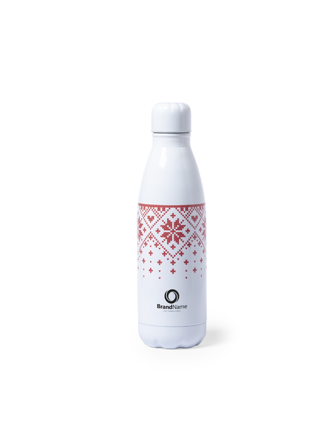 Bidón de 790ml de capacidad con cuerpo de acero inox brillo y diseño bicolor de navidad. Con tapón de seguridad y presentado en atractiva caja de diseño.