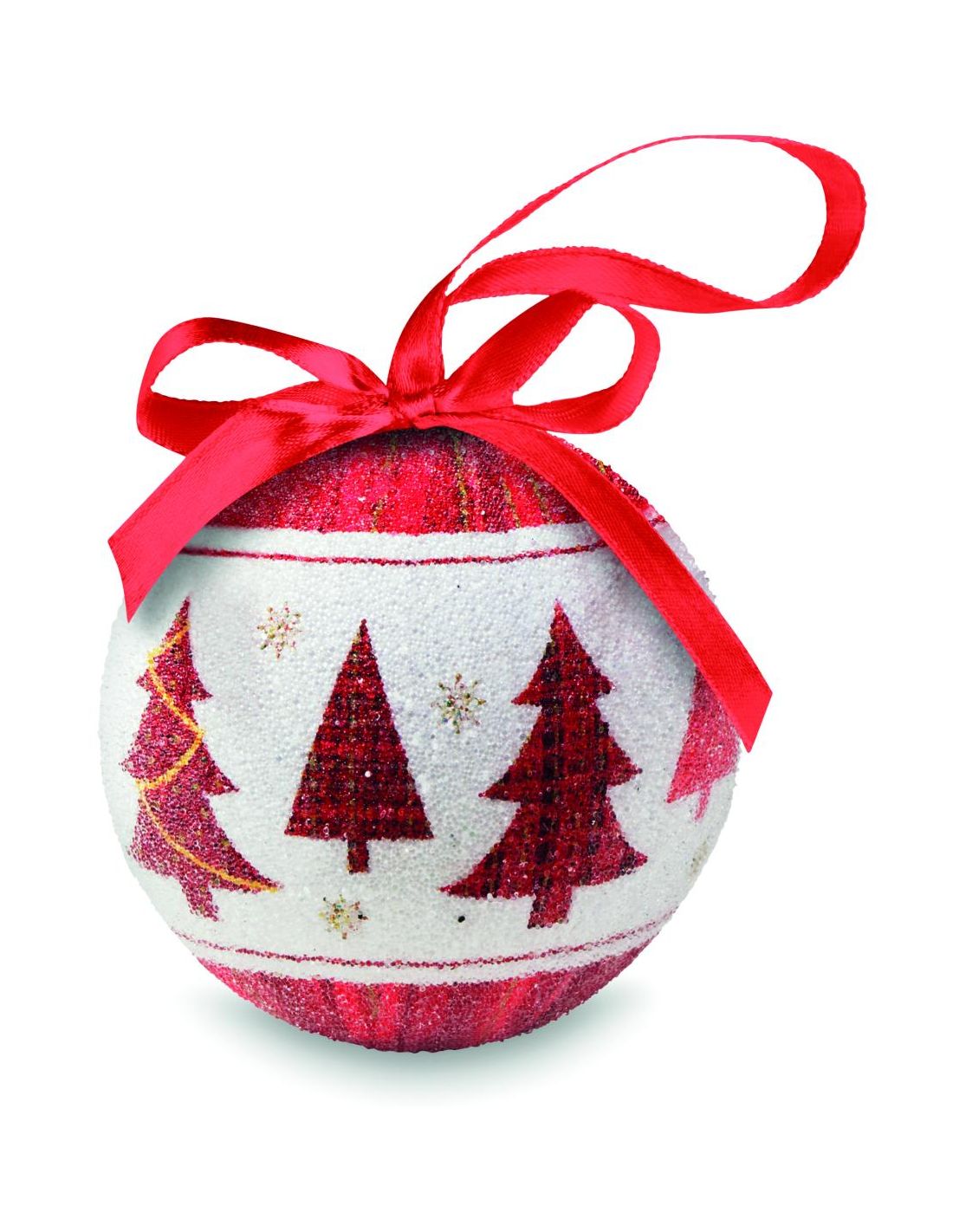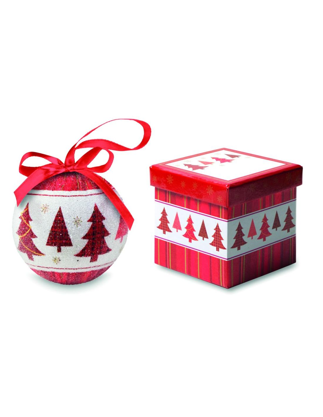 Bola navideña con acabado perlado con colgante. Caja individual decorada a juego.