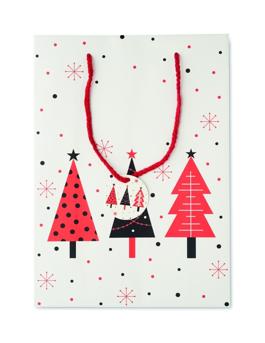 Bolsa de papel de regalo grande de Navidad (30% reciclado) con etiqueta incluida. 150 gr/m². FSC®-certified | FSC MIX, P5.3, FSC-C213206