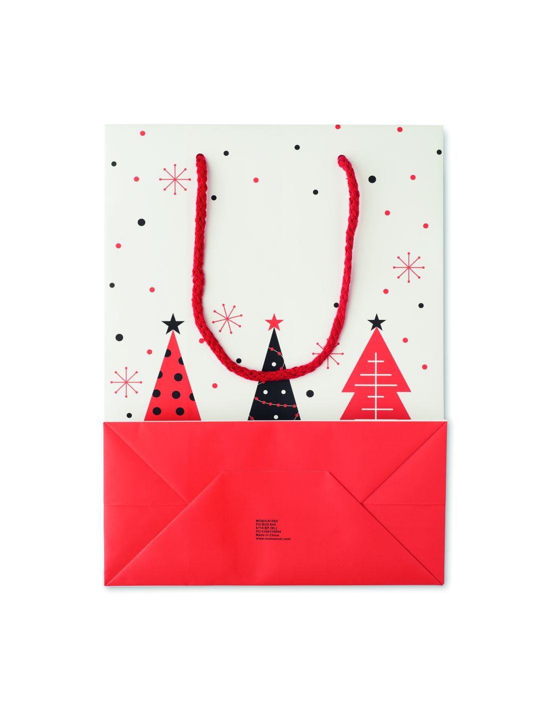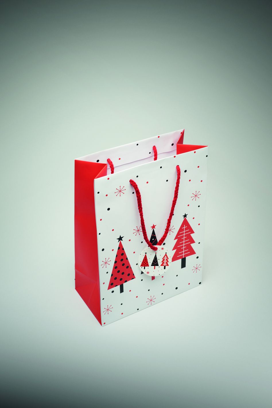 Bolsa de papel de regalo mediana de Navidad (30% reciclado) con etiqueta incluida. 150 gr/m². FSC®-certified | FSC MIX, P5.3, FSC-C213206