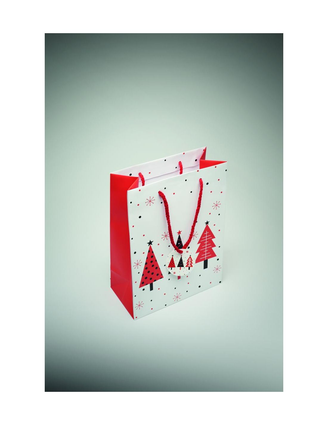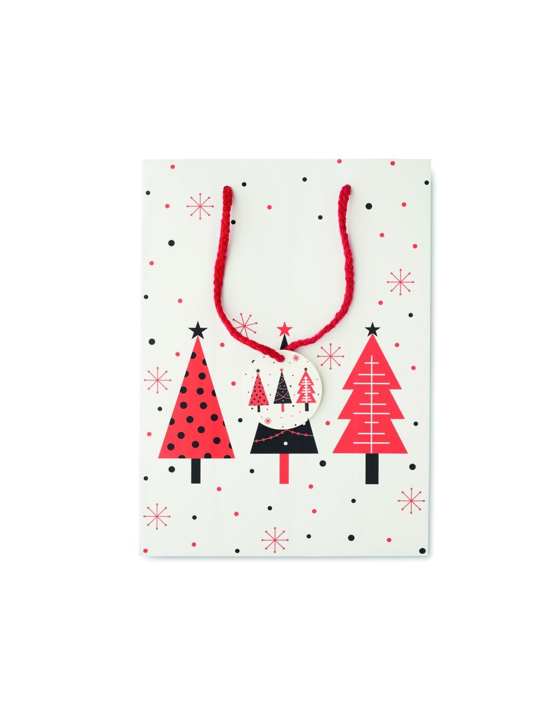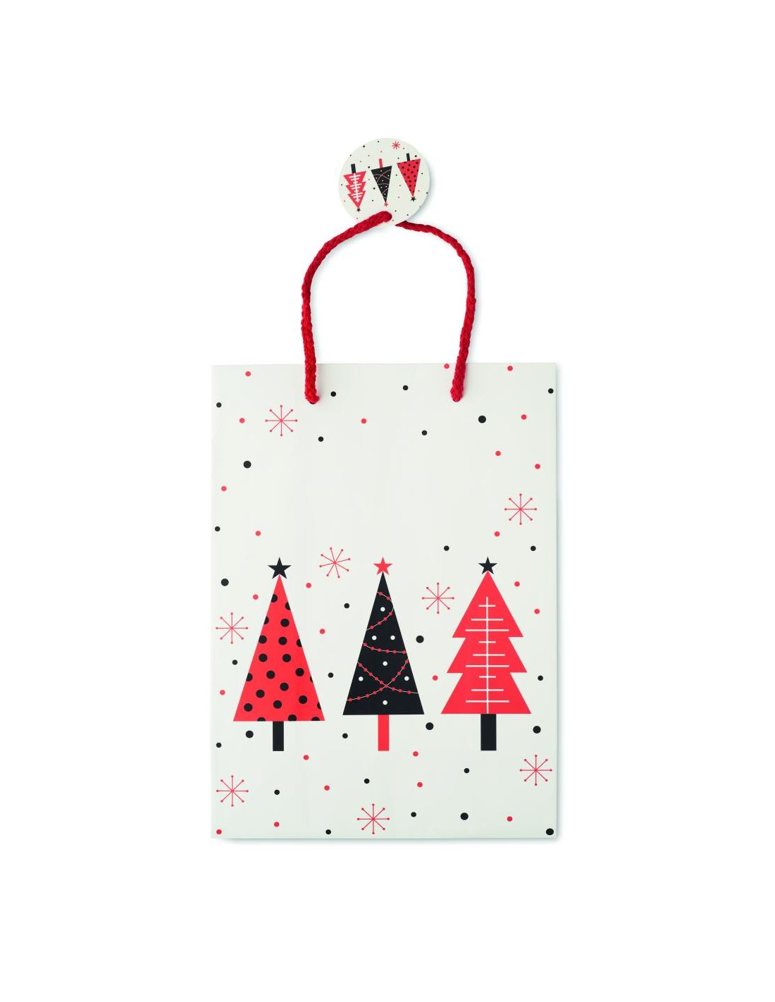 Bolsa de papel de regalo mediana de Navidad (30% reciclado) con etiqueta incluida. 150 gr/m². FSC®-certified | FSC MIX, P5.3, FSC-C213206