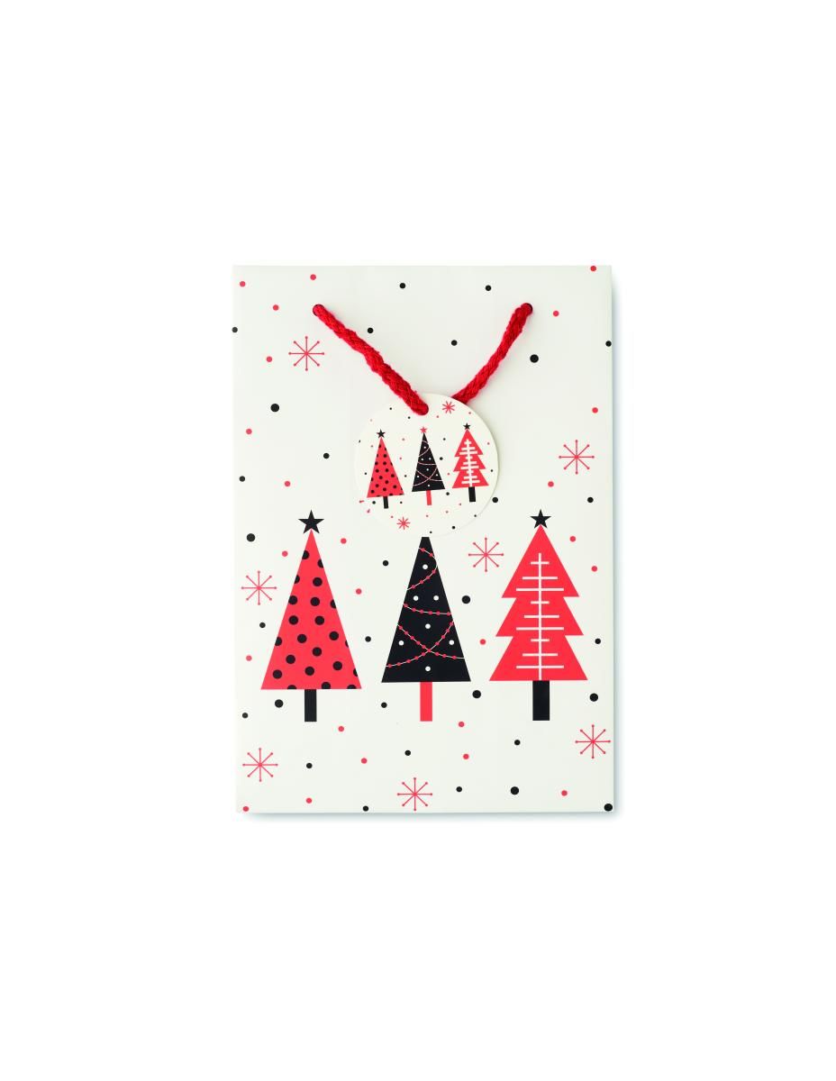 Bolsa pequeña de papel de regalo de Navidad (30% reciclado) con etiqueta incluida. 128 gr/m². FSC®-certified | FSC MIX, P5.3, FSC-C213206