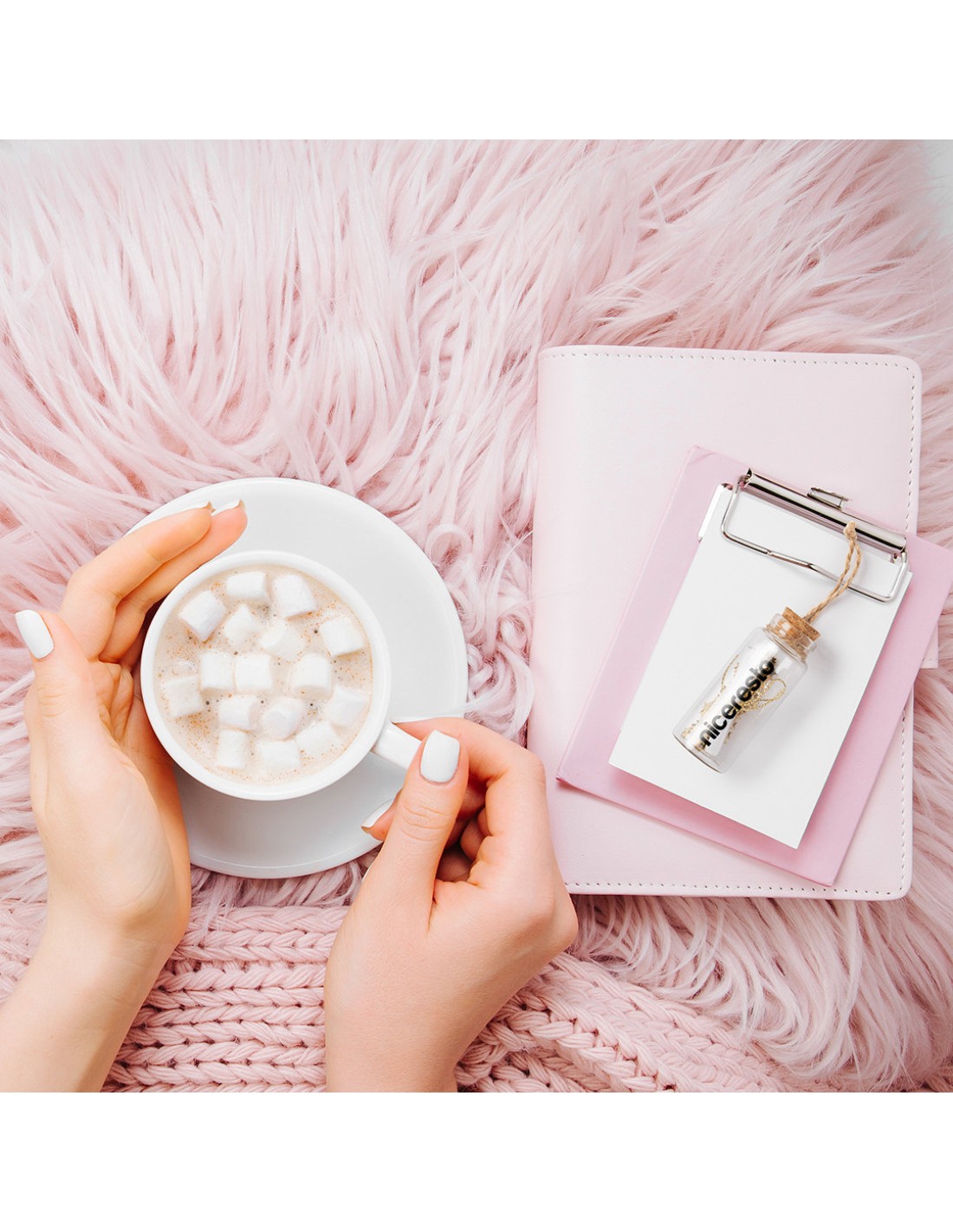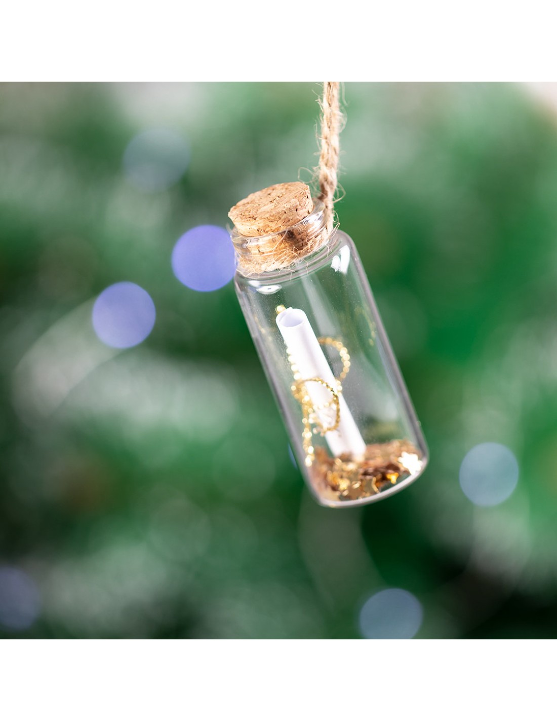 Botecito para guardar tus mejores deseos de esta navidad. Incluye pergamino de papel y bote en cristal. Con tapón y lacito para colgar, presentado en cajita blanca individual