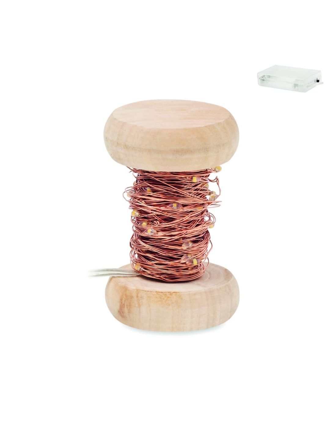 Guirnalda de 50 luces LED de luz amarilla cálida en un carrete de madera. Longitud: 5 m. Funciona con 3 pilas AA no incluidas.