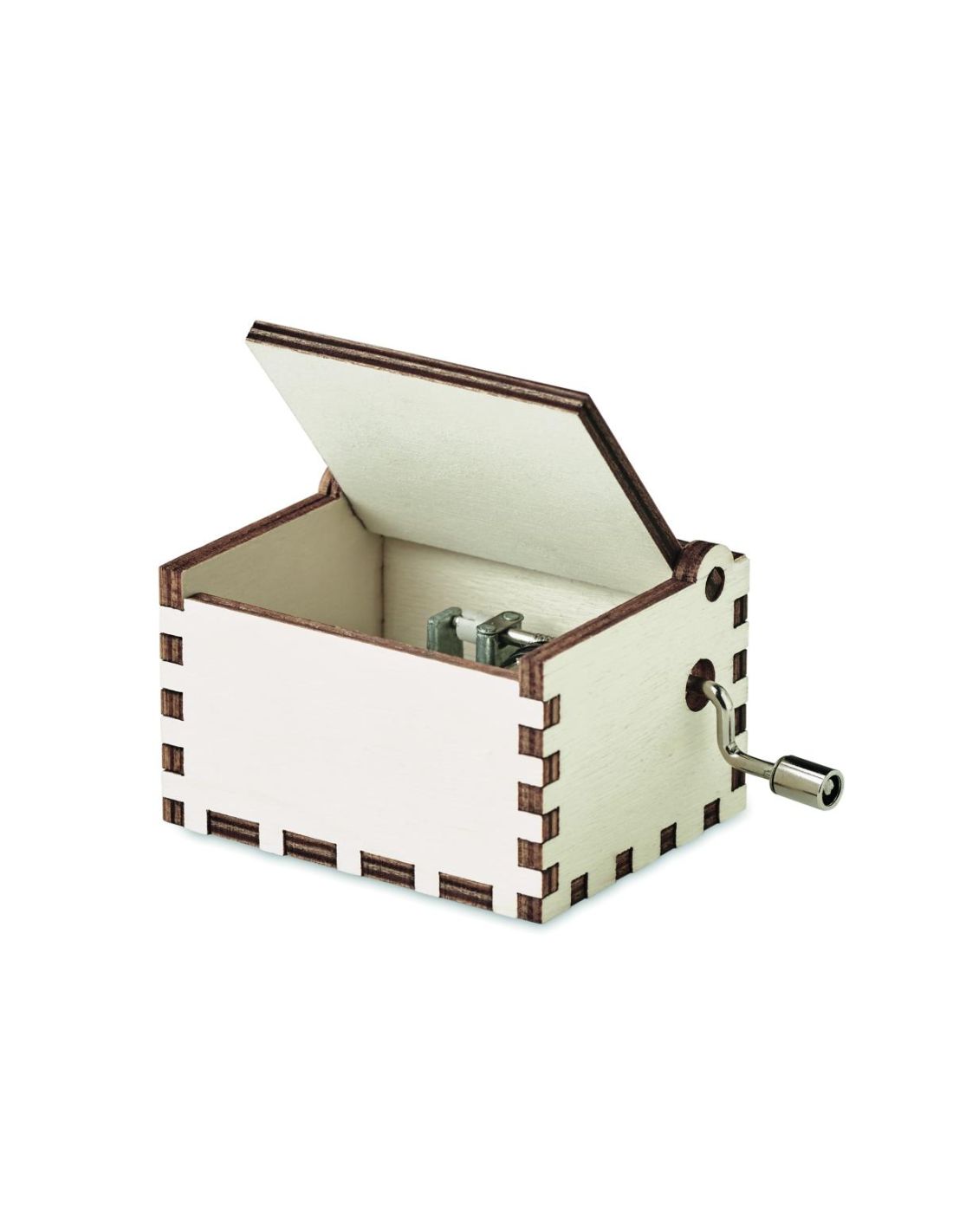 Caja de música de madera decorado con motivos navideños con la canción de Feliz Navidad. No necesita pilas, funciona con la manivela.
