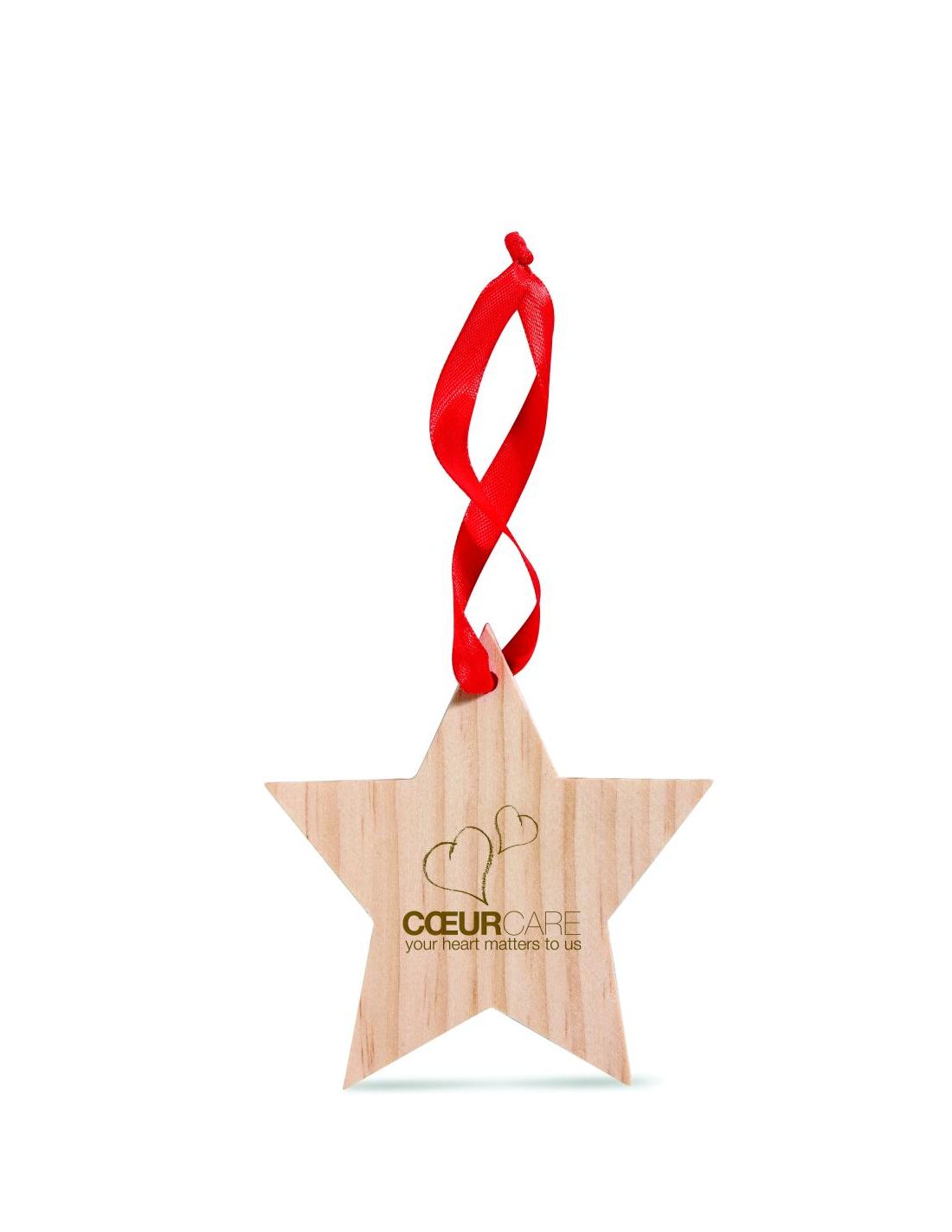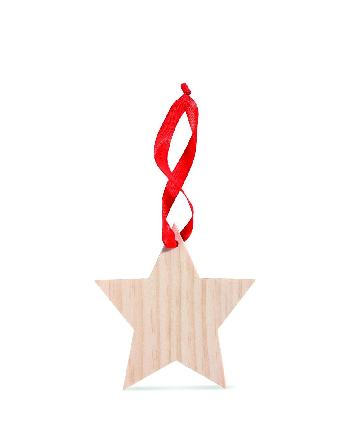 Estrella de madera con cinta roja para colgar en el árbol de Navidad.