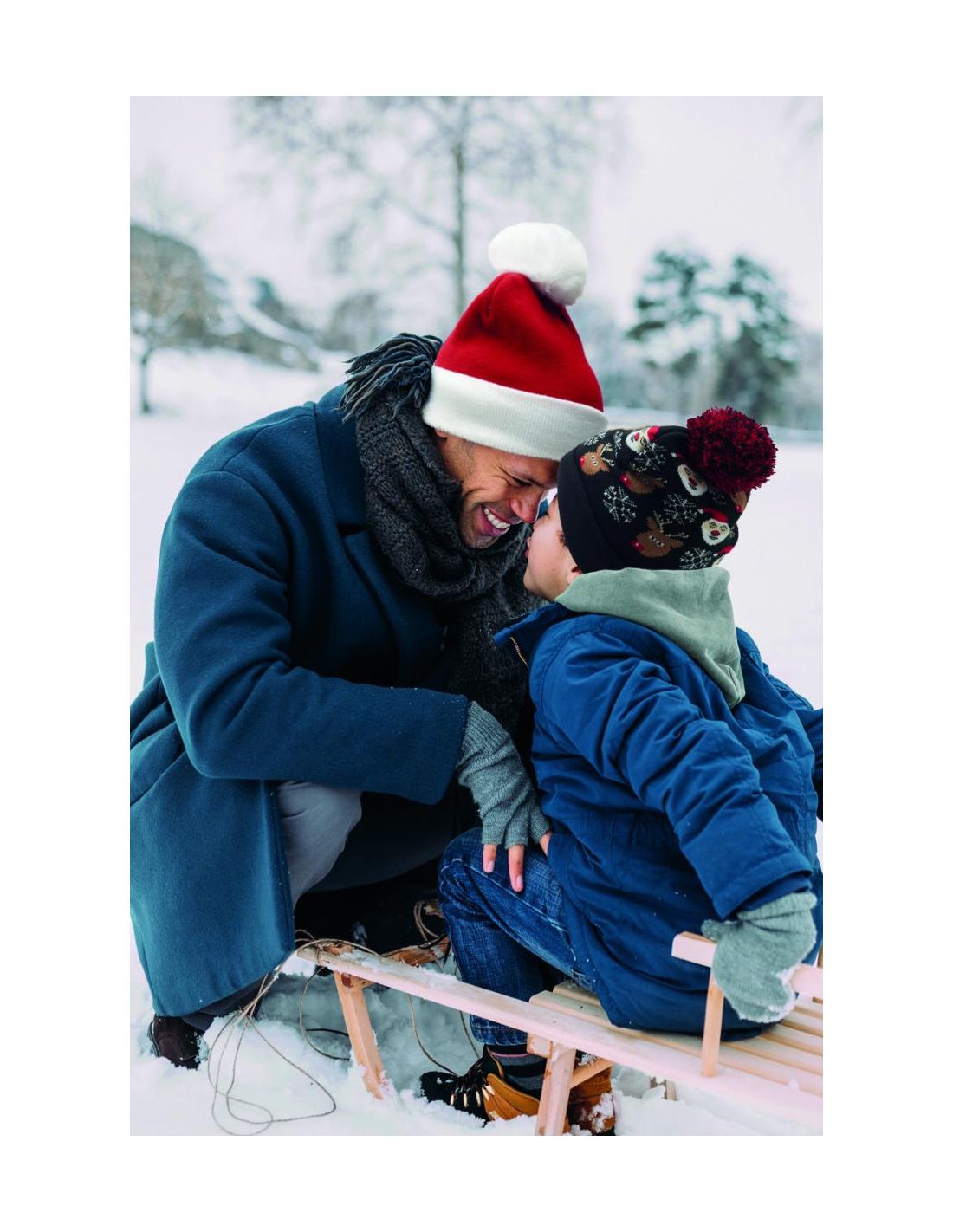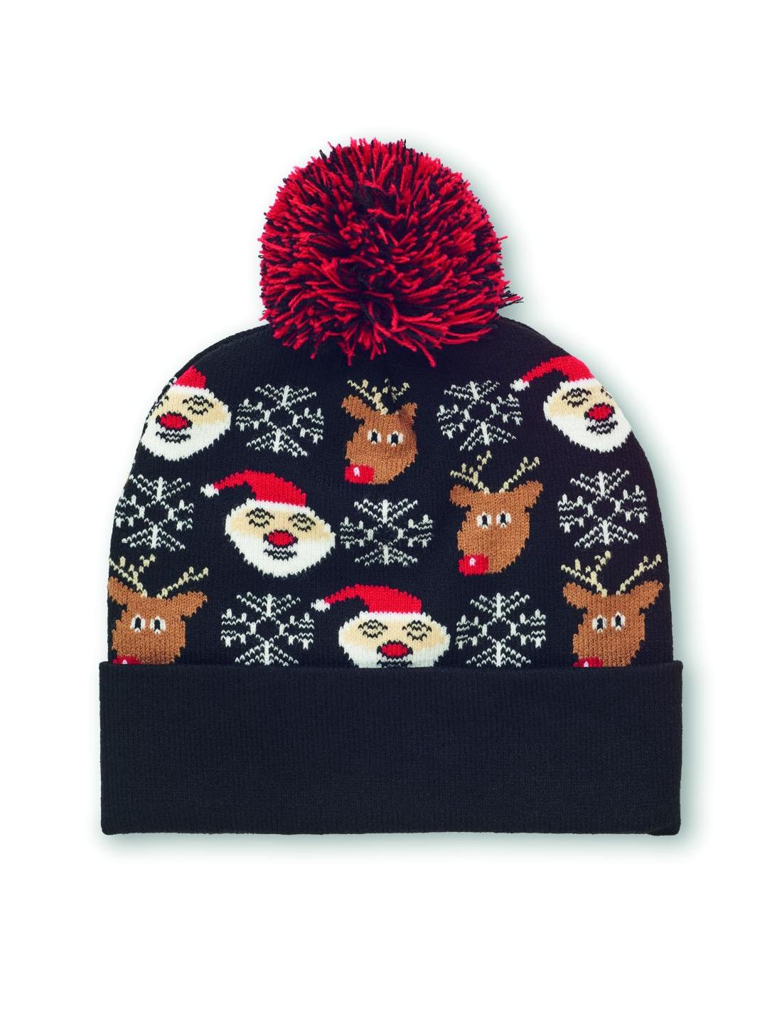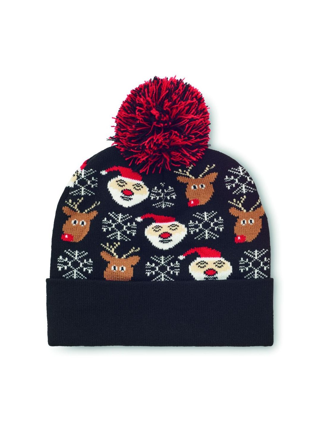 Gorro de punto navideño con puño y borla en suave acrílico elástico.