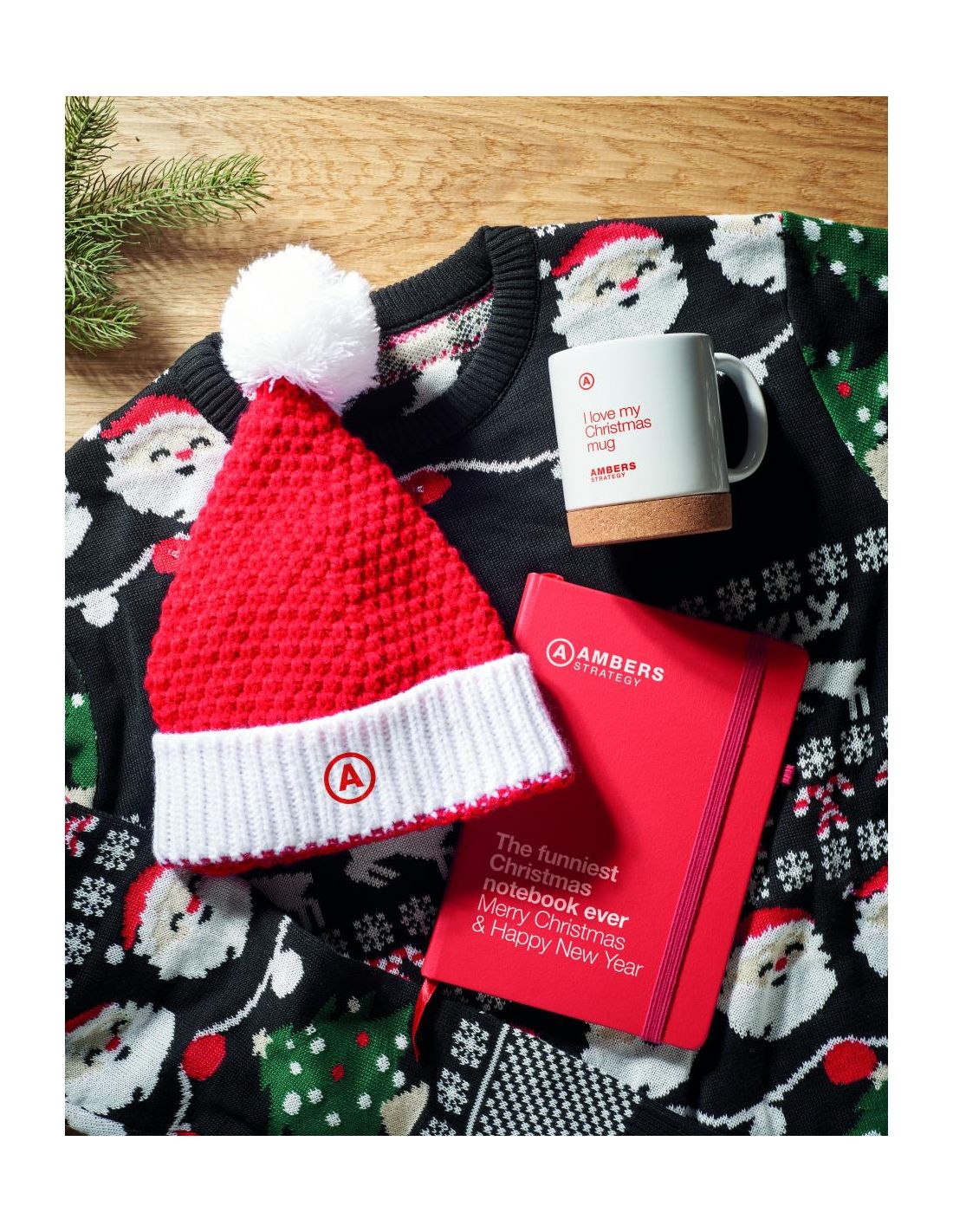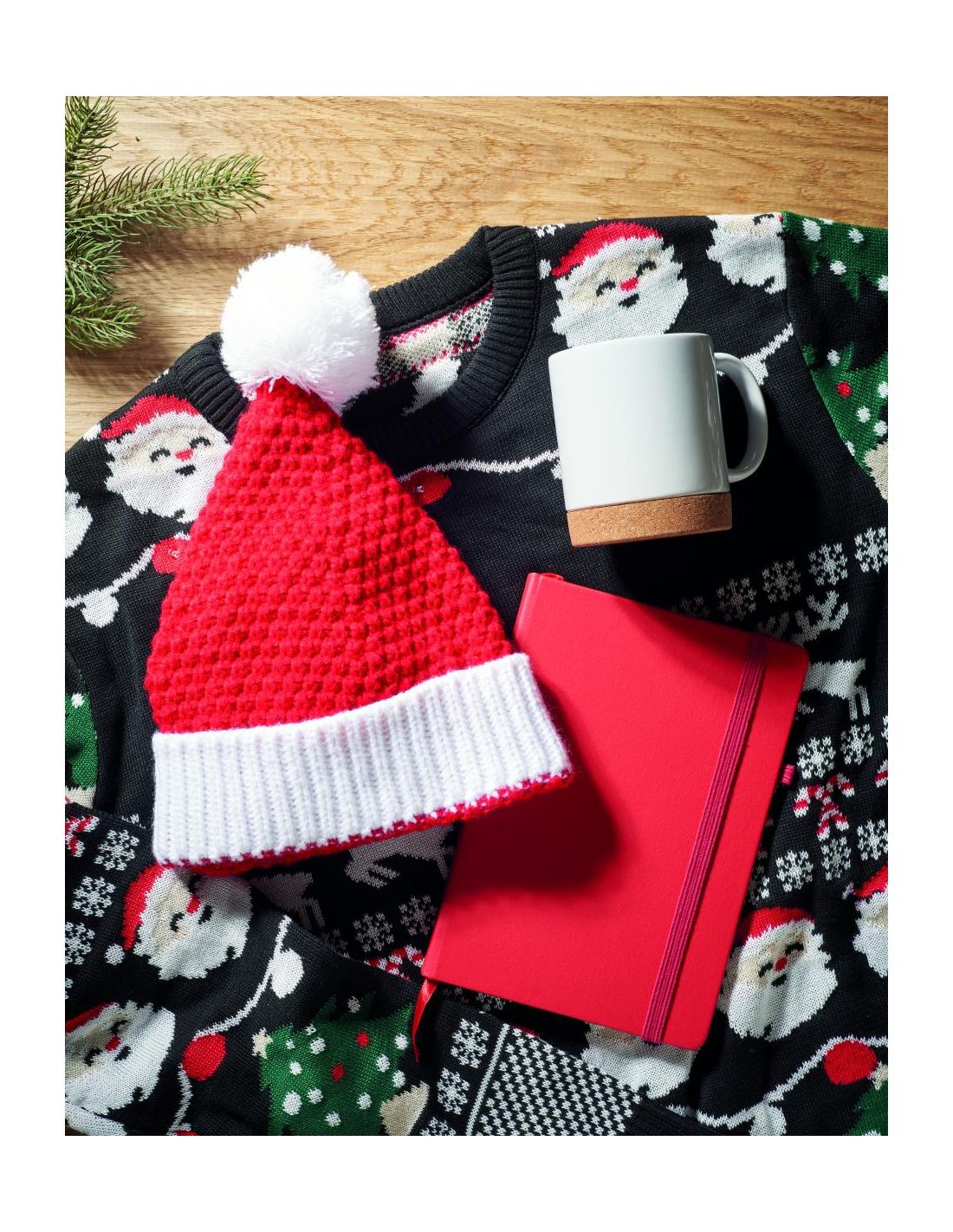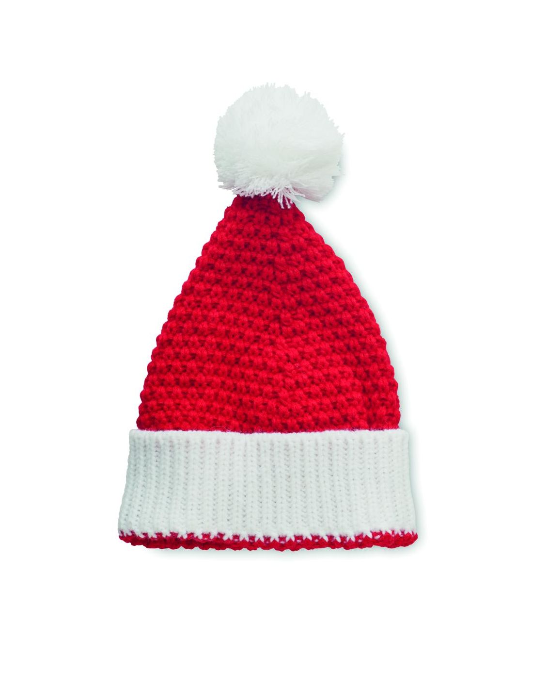 Gorro de punto navideño con puño y borla hecho en suave acrílico elástico.