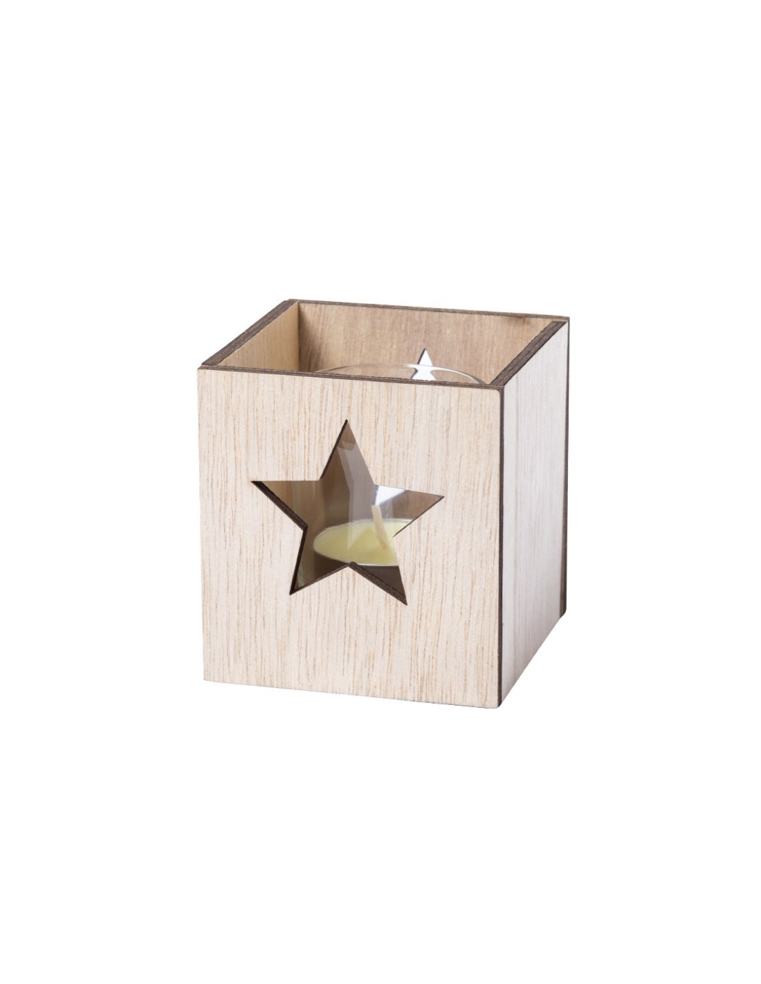 Vela aromática navideña de línea nature y aroma vainilla. Fabricada en cristal, con caja de madera troquelada y original diseño. Presentada en caja individual de color natural.