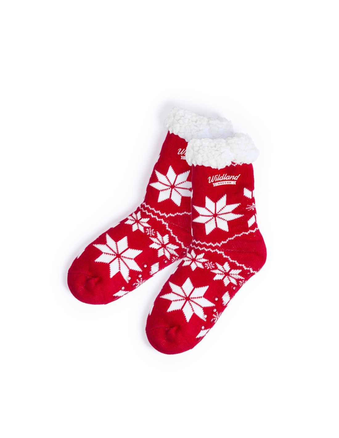 Par de calcetines anti deslizantes con motivos navideños, diseñados para andar por casa. De suave poliéster acrílico exterior y con cálido forro interior.